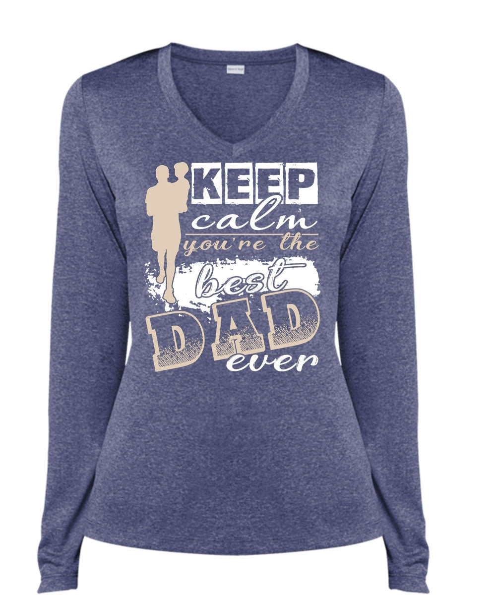 Keep Calm You're The Best Dad Ever T Shirt, Being A Papa T Shirt, Cool Shirt (Ladies LS Heather V-Neck)