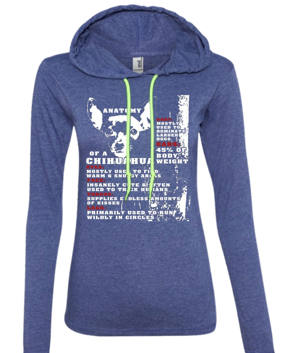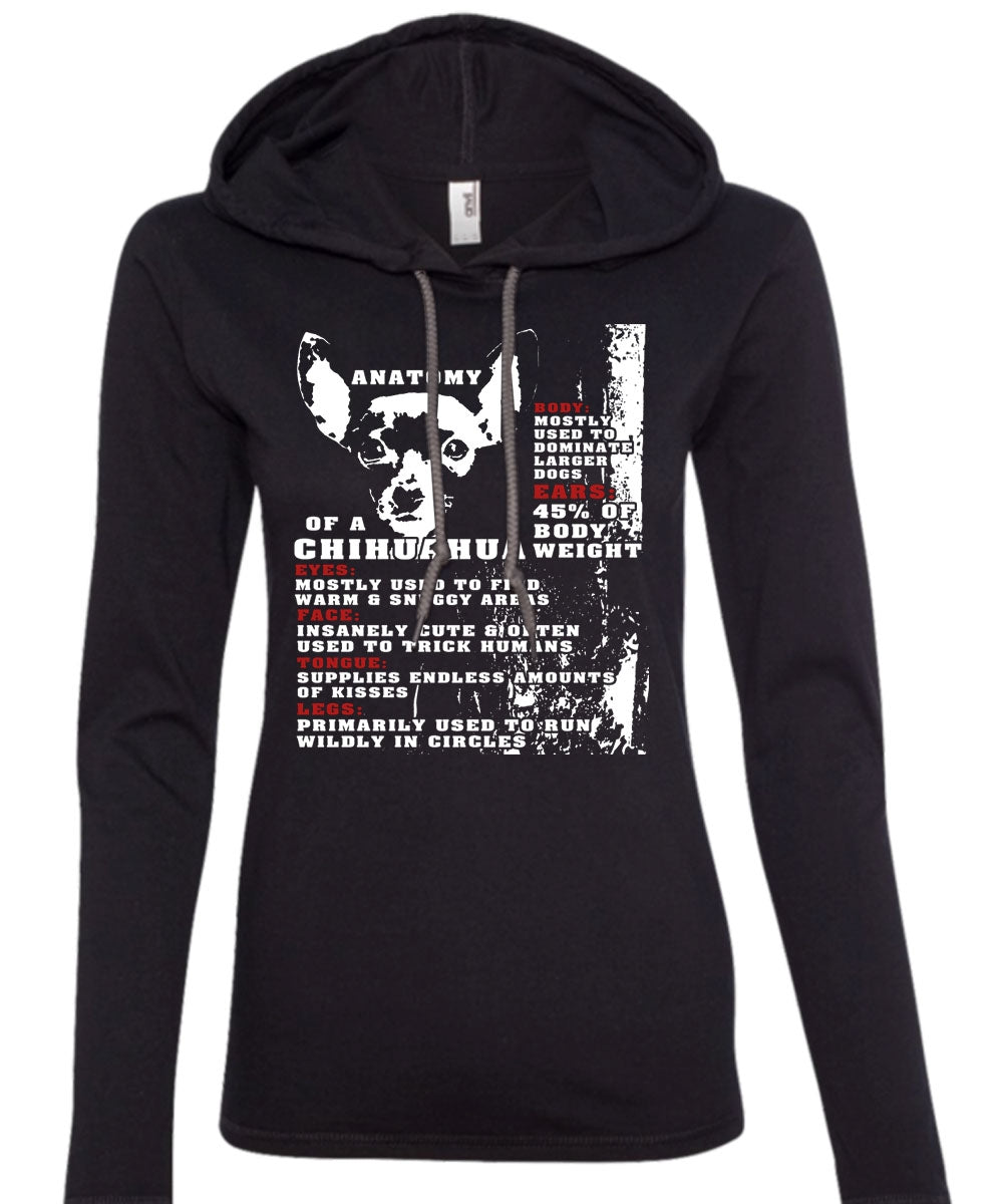 Anatomy Of A Chihuahua T Shirt, I Love My Dog T Shirt (Anvil Ladies Ringspun Hooded)