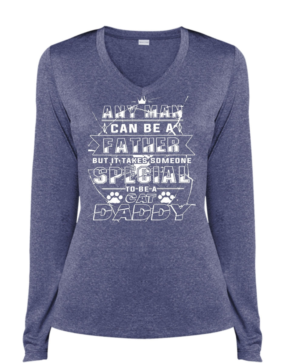Any Man Can Be A Father But It Takes Someone Special To Be A Cat Daddy T Shirt (Ladies LS Heather V-Neck)