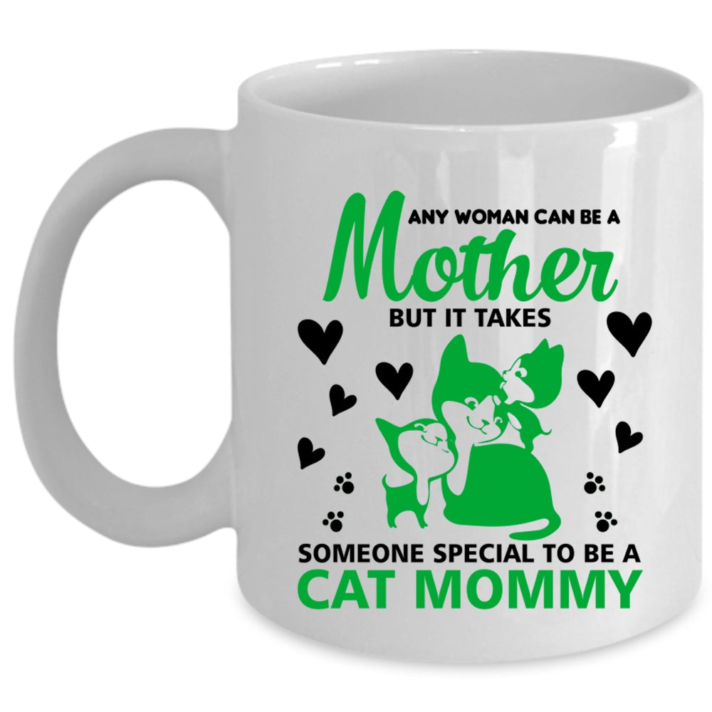 Any Woman Can Be A Mother Mug, Someone To Be A Cat Mommy Cup (Coffee Mug - White)