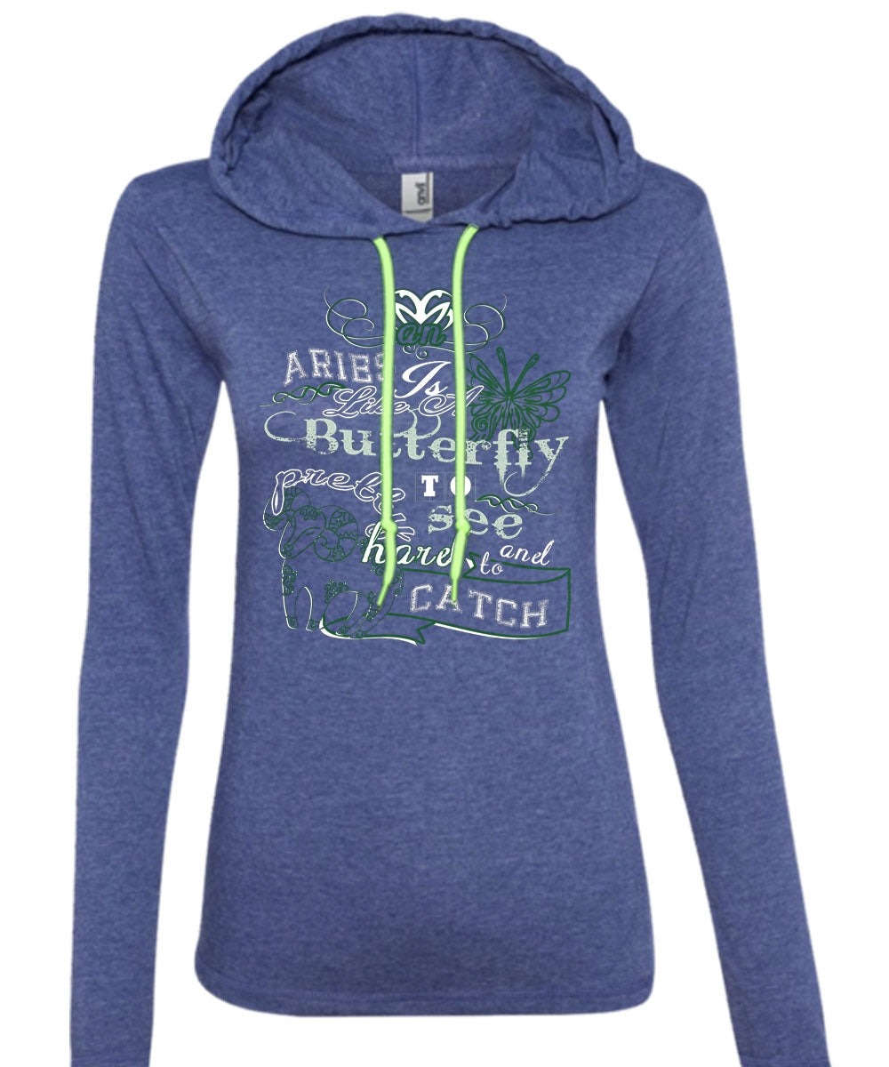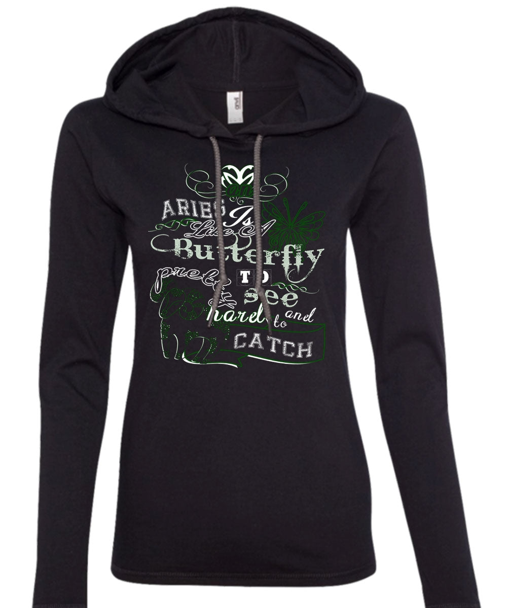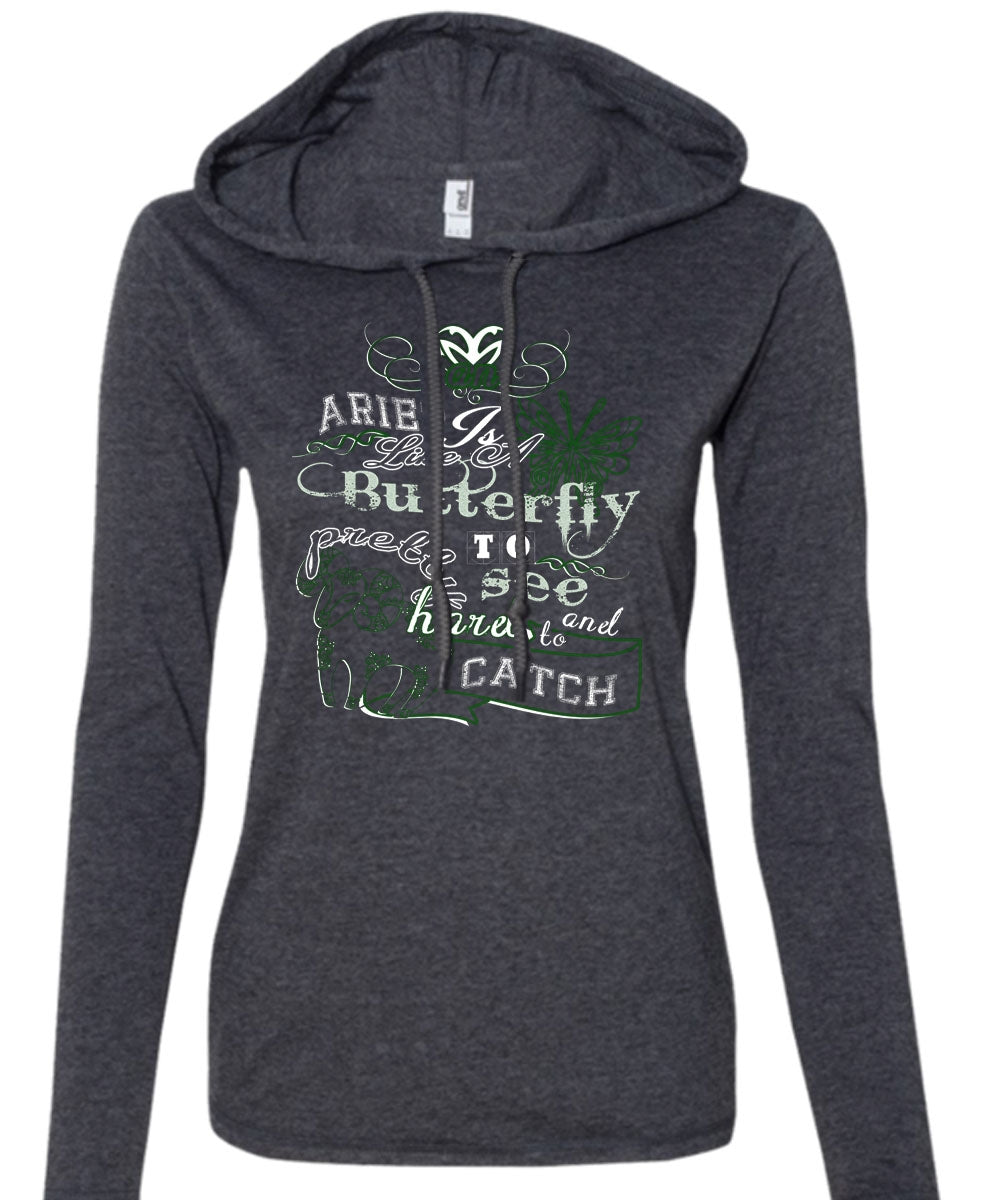 Aries Is Like A Butterfly To See And Too Catch Pretty Harel T Shirt (Anvil Ladies Ringspun Hooded)