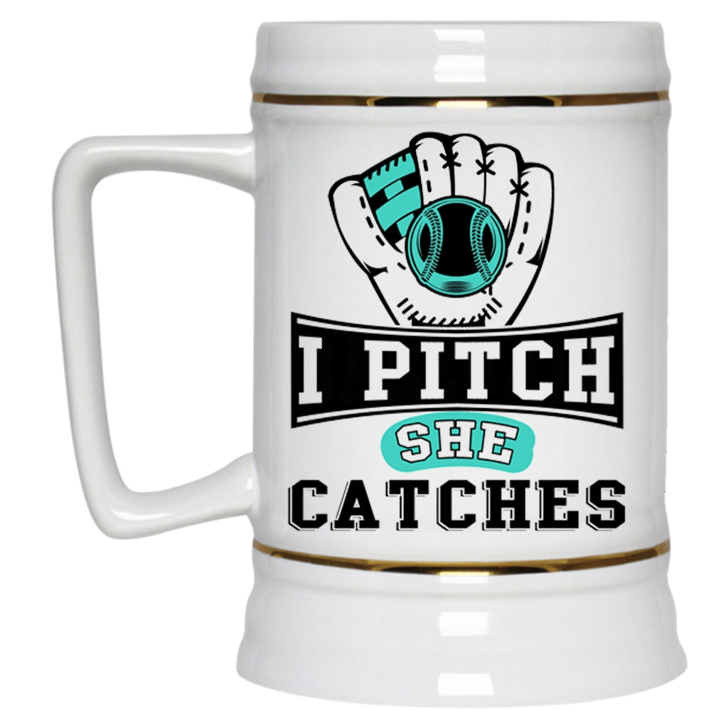 Awesome Softball Player Beer Stein 22oz, I Pitch She Catches Beer Mug