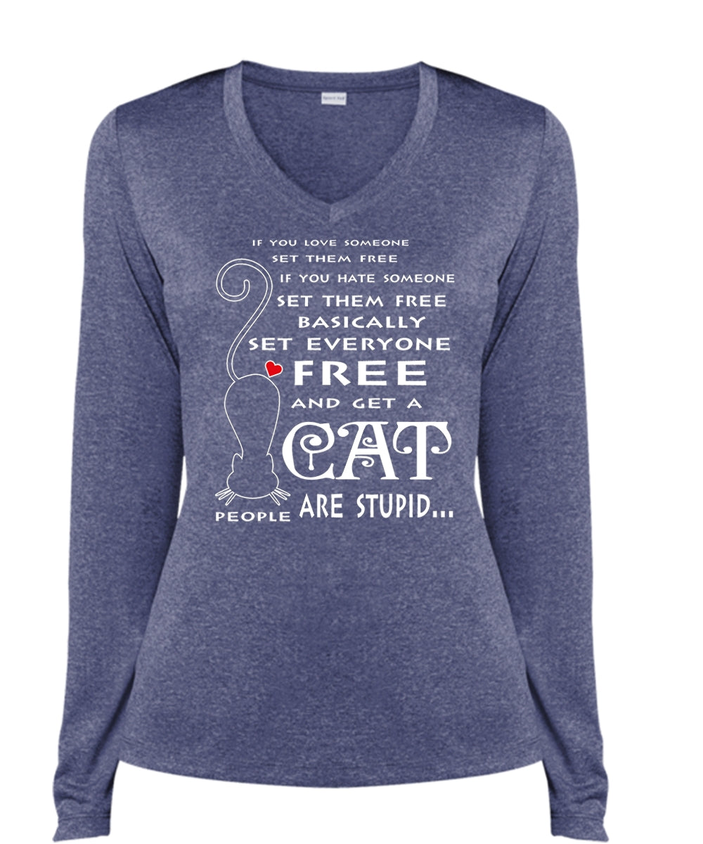 Basically Set Everyone Free And Get A Cat Are Stupid T Shirt, My Pets T Shirt (Ladies LS Heather V-Neck)