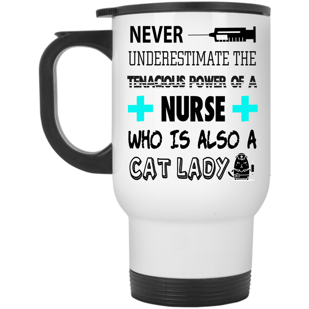 Cat Lady Travel Mug, The Tenacious Power Of A Nurse Mug