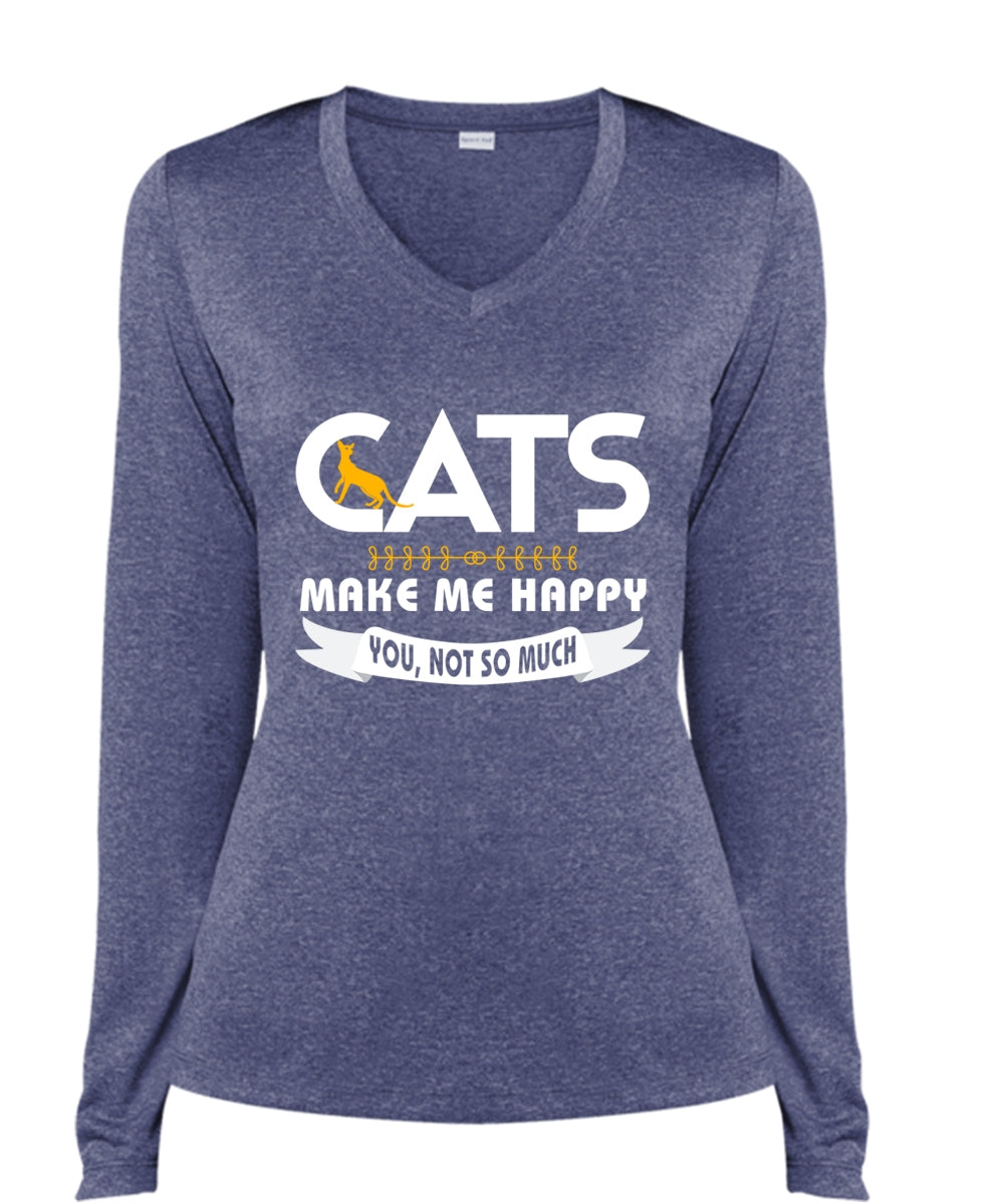 Cat Make Me Happy T Shirt, I Love Cat T Shirt, My Pets T Shirt (Ladies LS Heather V-Neck)