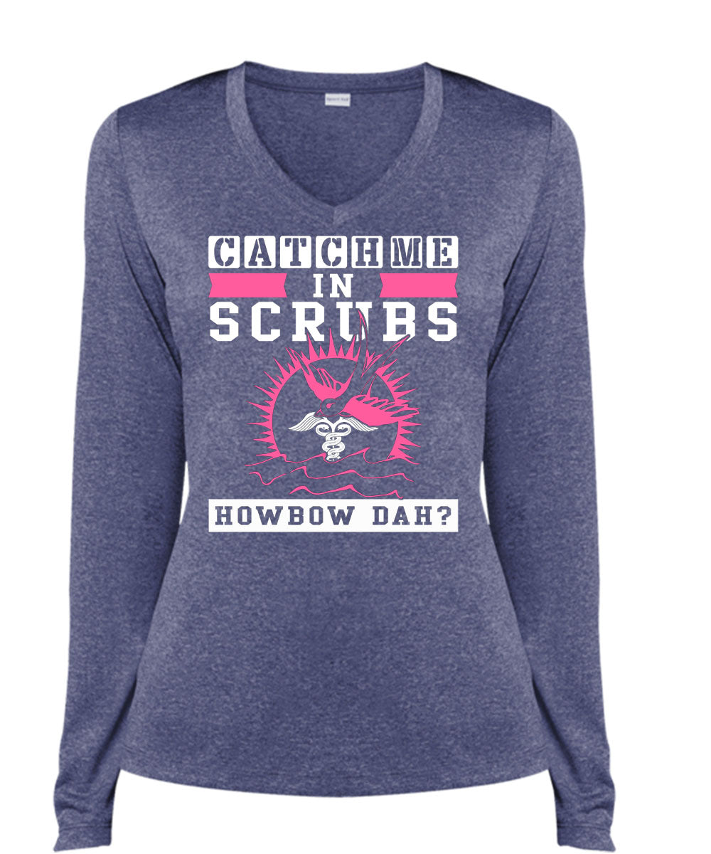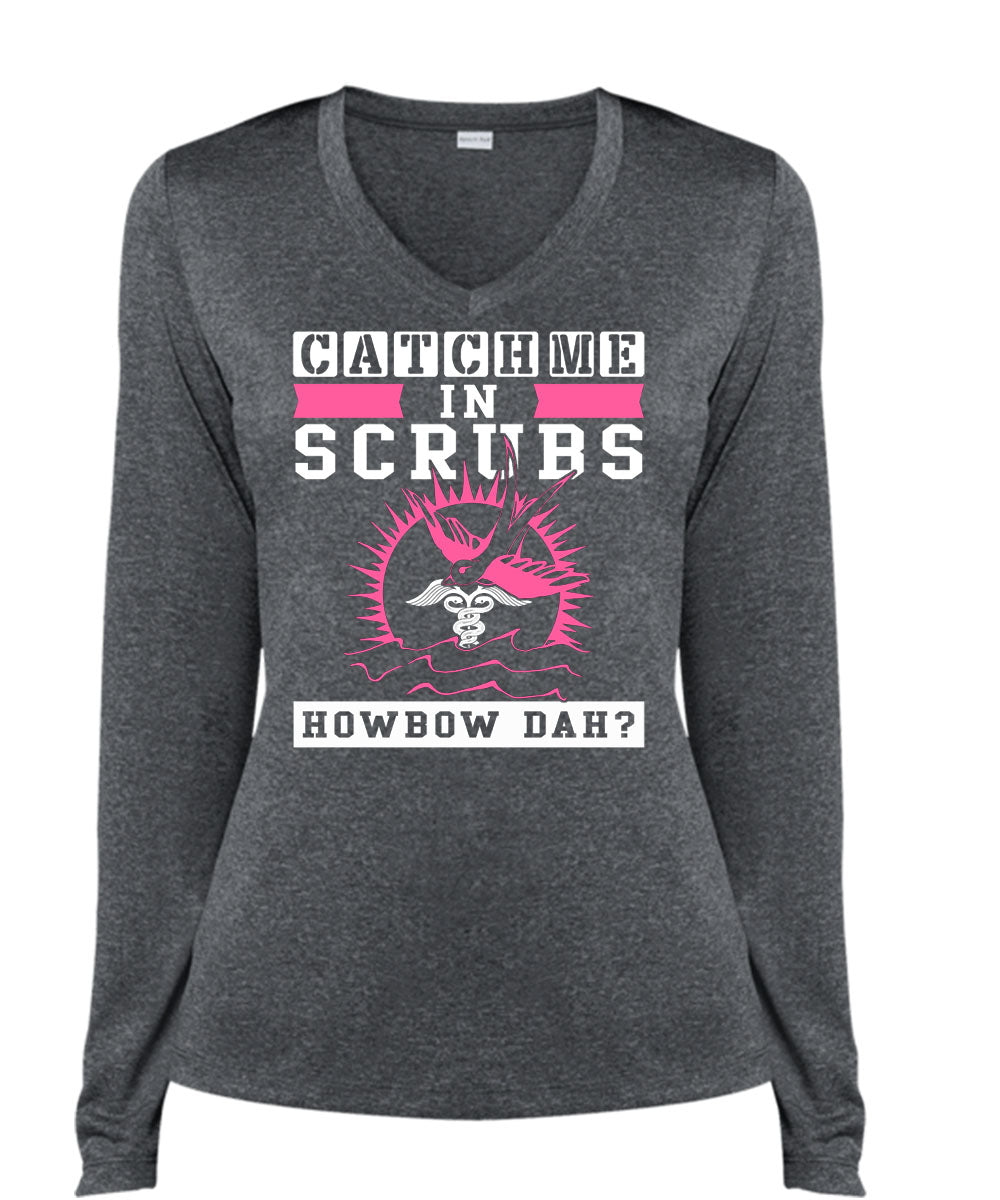 Catch Me In Scrubs Howbow Dah T Shirt, I Love Doctor T Shirt, Cool Shirt (Ladies LS Heather V-Neck)