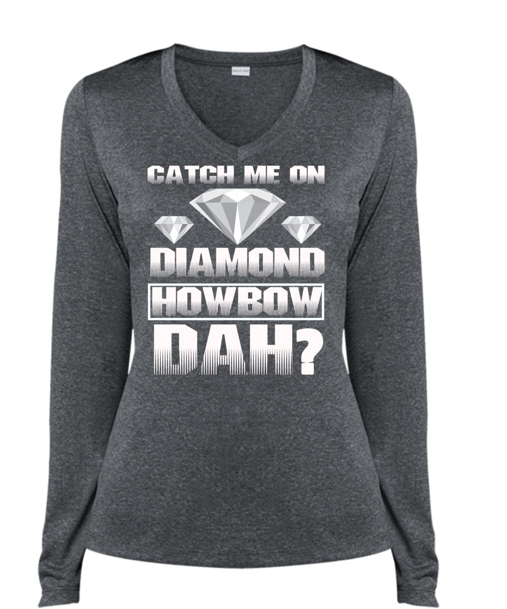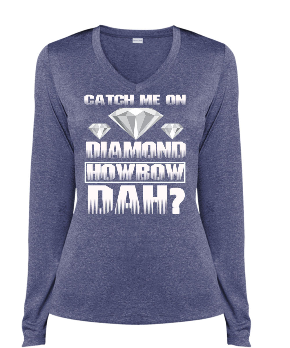 Catch Me On Diamond Howbow Dah T Shirt, My Favorite T Shirt, Cool Shirt (Ladies LS Heather V-Neck)