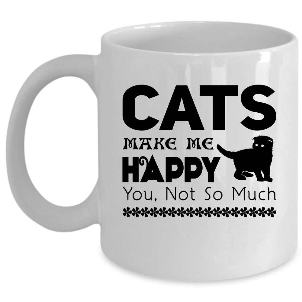 Cats Make Me Happy Mug, I Love My Pets Cup (Coffee Mug - White)