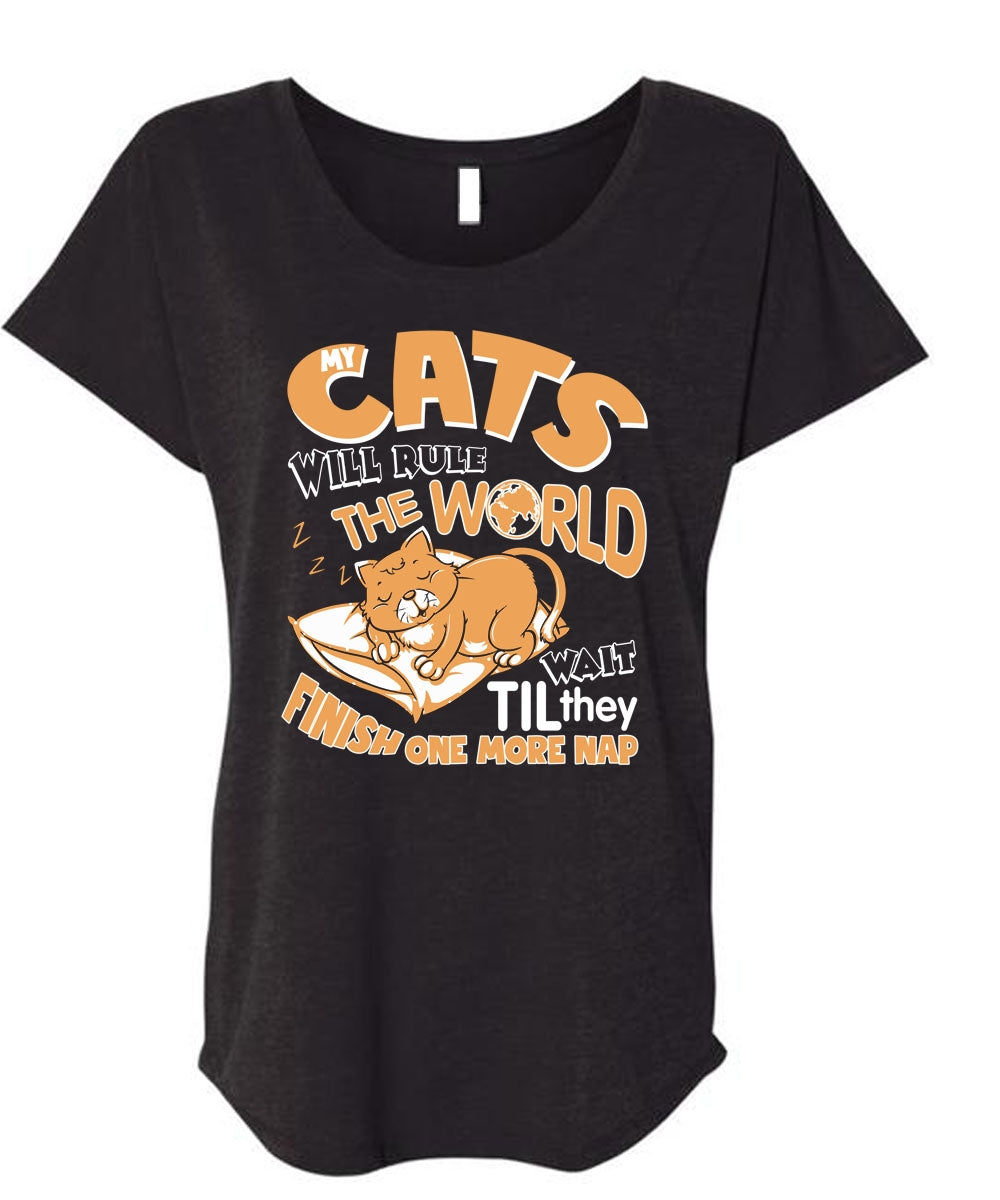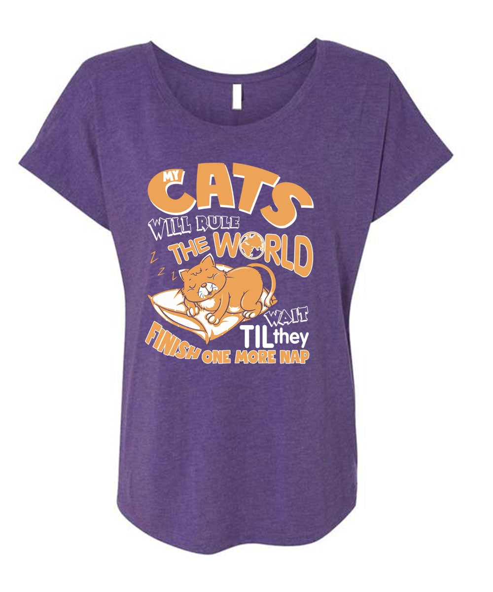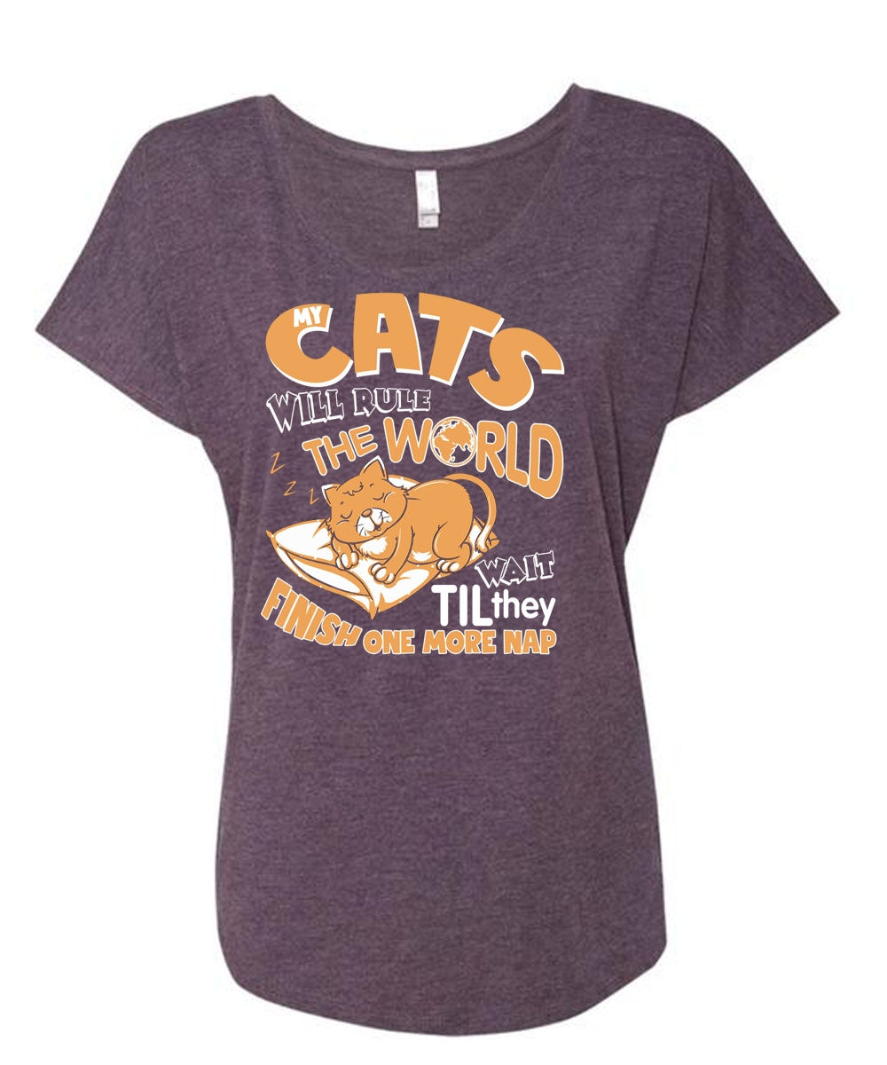Cat's Will Rule The World T Shirt, They Finish One More Nap T Shirt, Cool Shirt (Ladies' Triblend Dolman Sleeve)