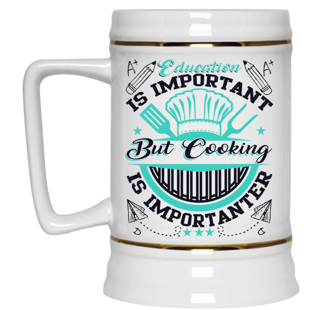 Cooking Is Importanter Beer Stein 22oz, Education Is Important Beer Mug