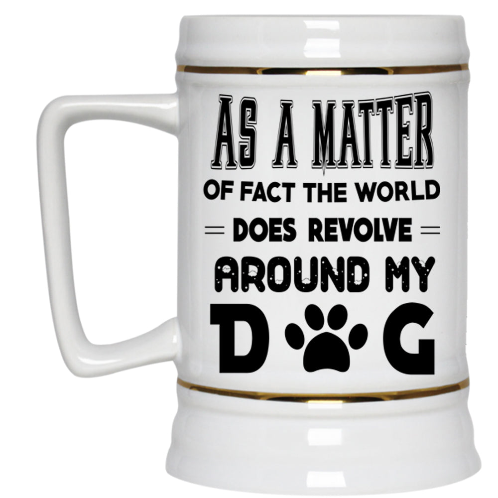 Cool Beer Stein 22oz, The World Does Revolve Around My Dog Beer Mug