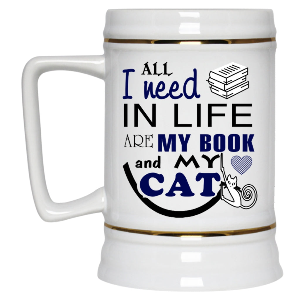 Cool Booker Beer Stein 22oz, All I Need In Life Are My Book And My Cat Beer Mug