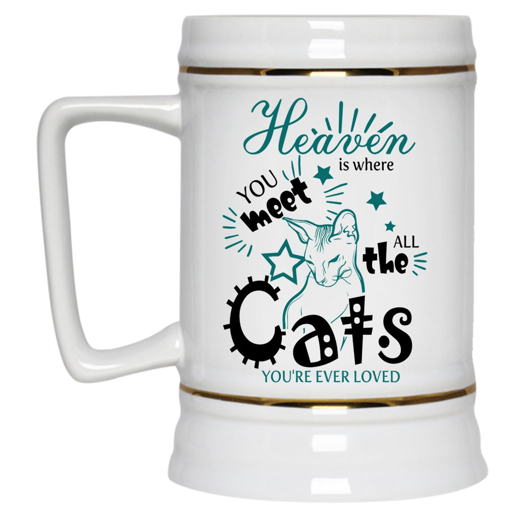 Cool Cats Beer Stein 22oz, Heaven Is Where You Meet All The Cats Beer Mug