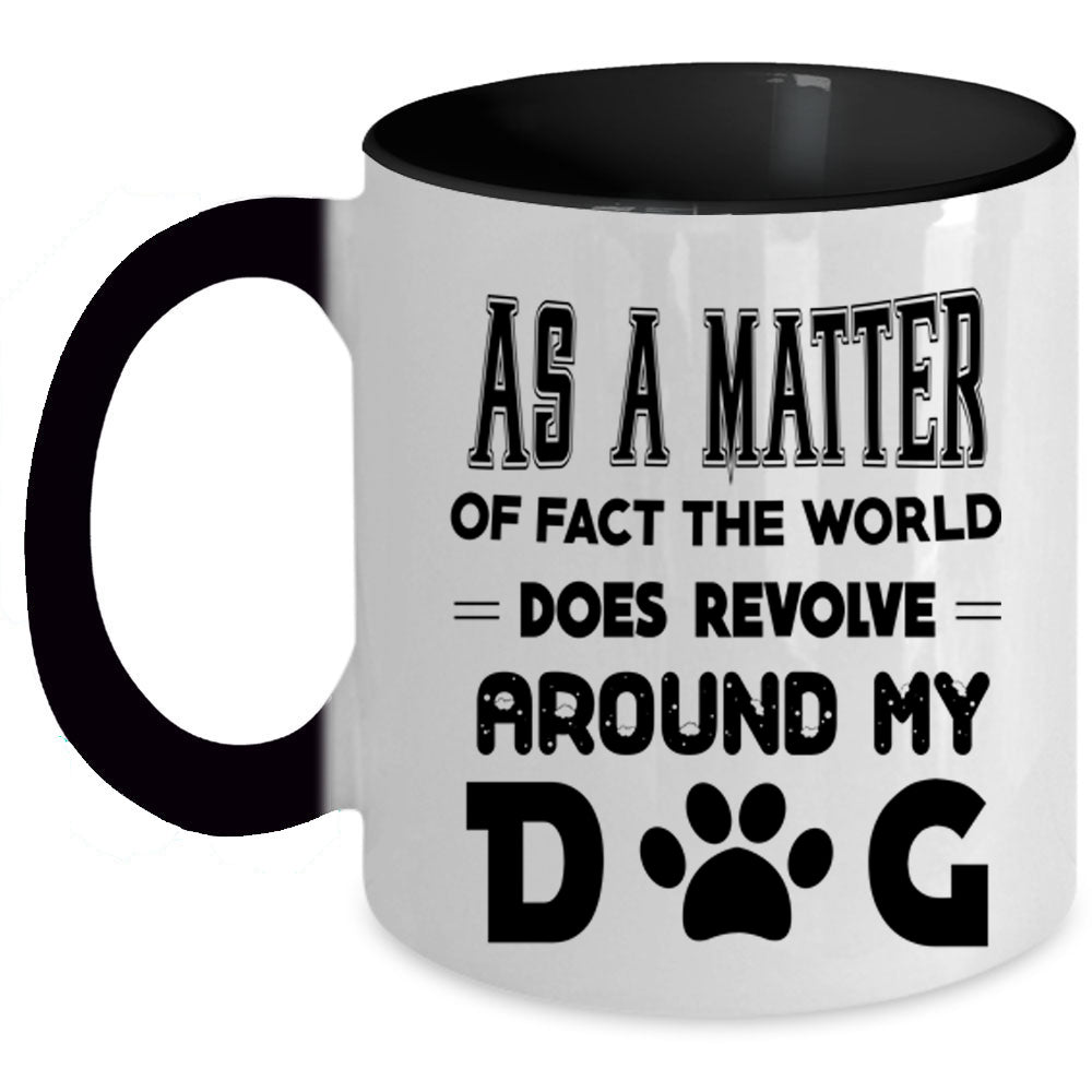 Cool Coffee Mug, The World Does Revolve Around My Dog Accent Mug