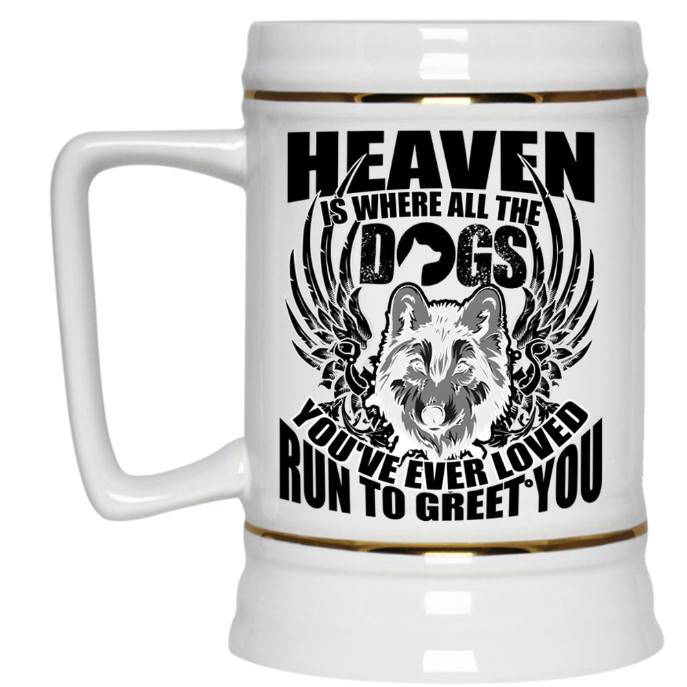 Cool Dogs Beer Stein 22oz, Heaven Is Where All The Dogs Beer Mug