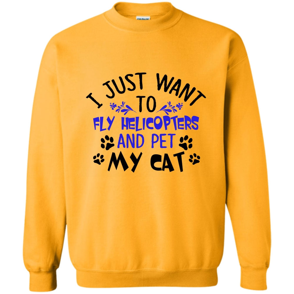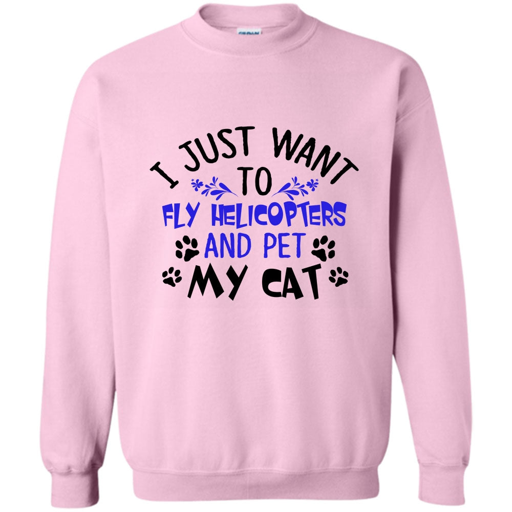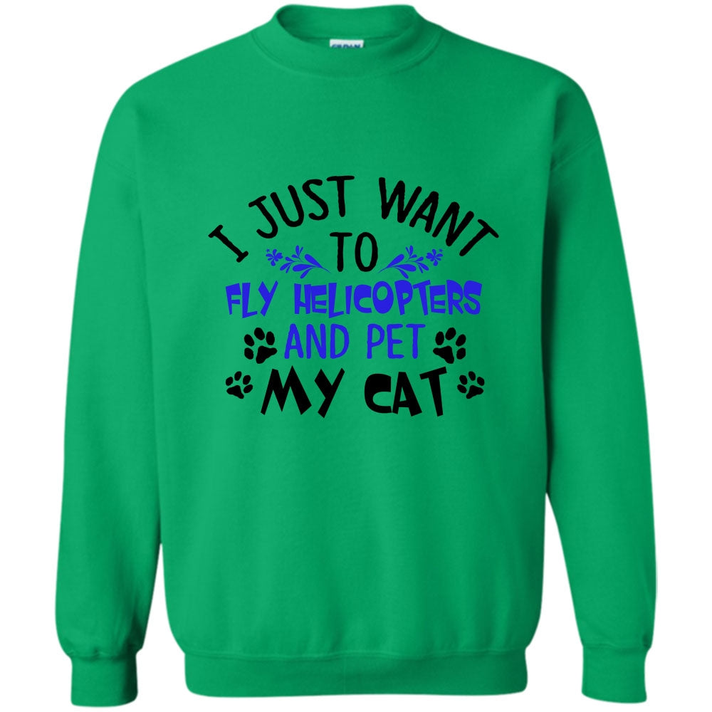 Coolest Pilot T Shirt, I Just Want To Fly Helicopters And Pet My Cat Sweatshirt