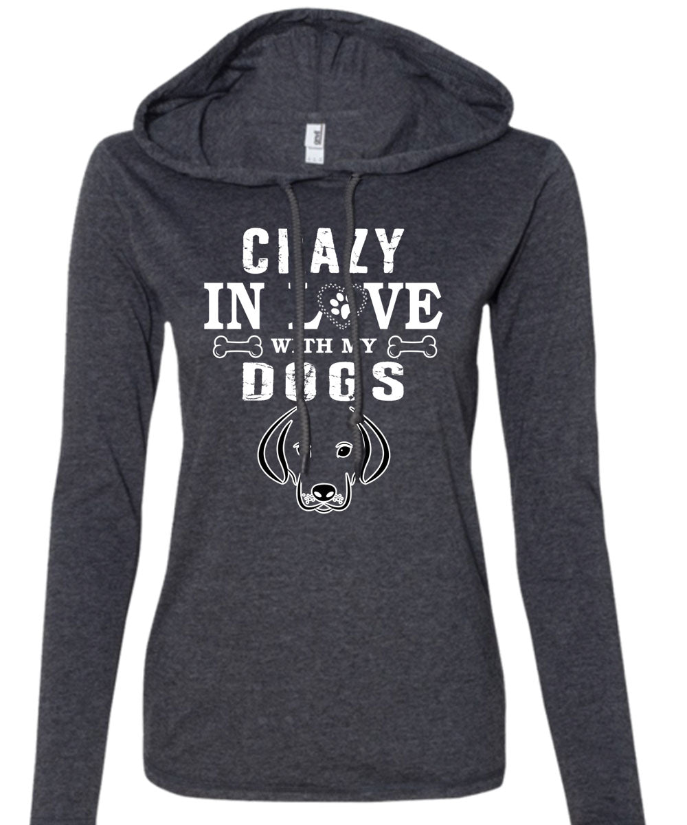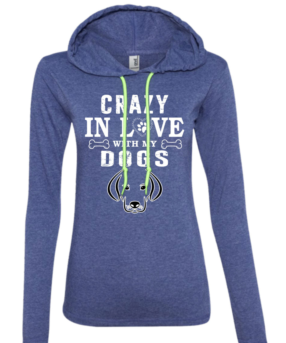 Crazy In Love With My Dogs T Shirt, I Love Dogs T Shirt (Anvil Ladies Ringspun Hooded)