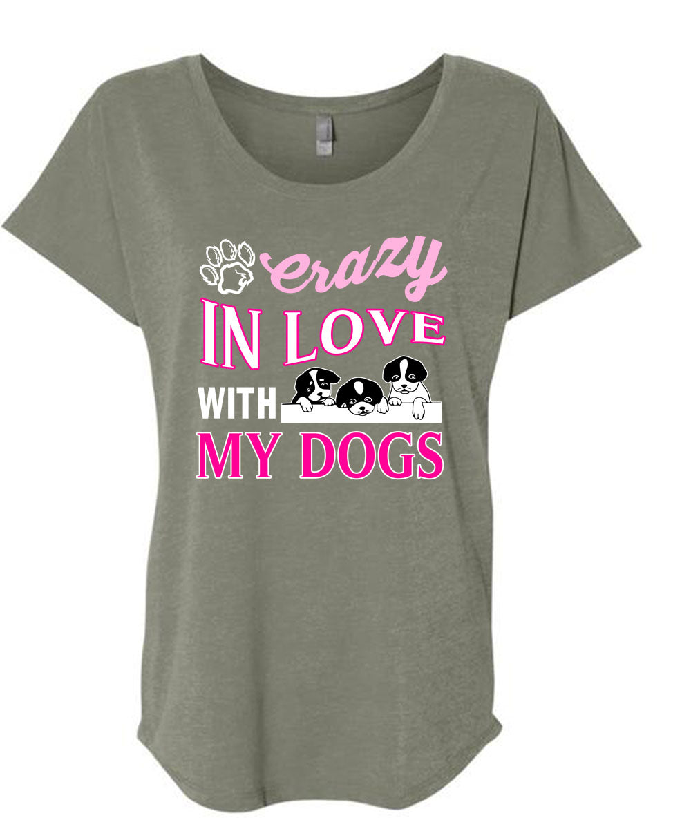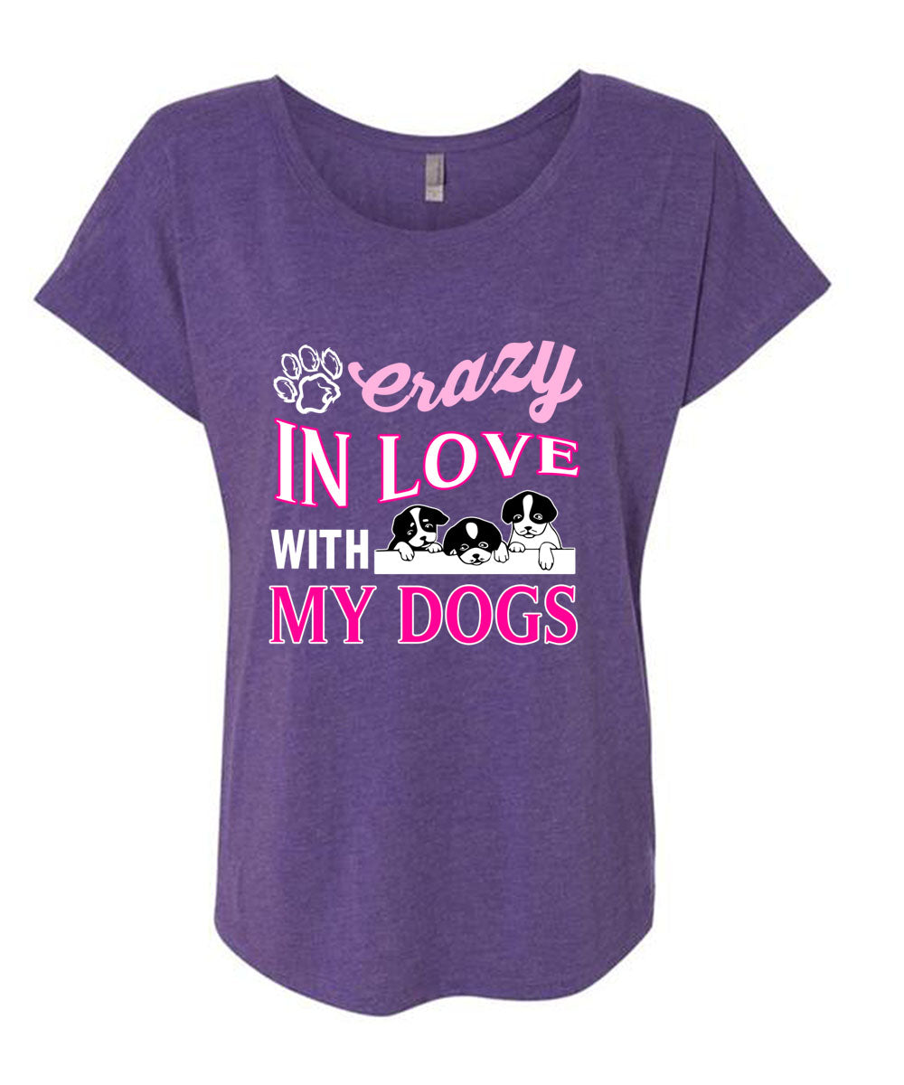 Crazy In Love With My Dogs T Shirt, I Love My Dogs T Shirt, Cool Shirt (Ladies' Triblend Dolman Sleeve)