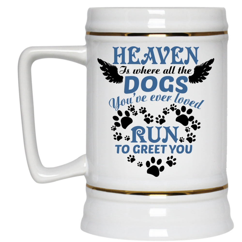 Cute Dogs Beer Stein 22oz, Heaven Is Where All The Dogs Beer Mug