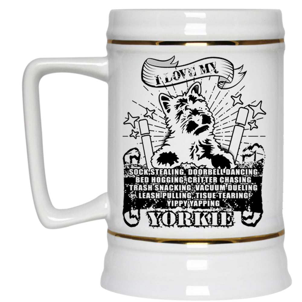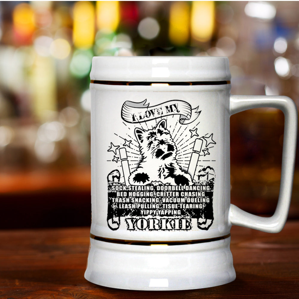 Cute Dogs Beer Stein 22oz, I Love My Yorkie Beer Mug