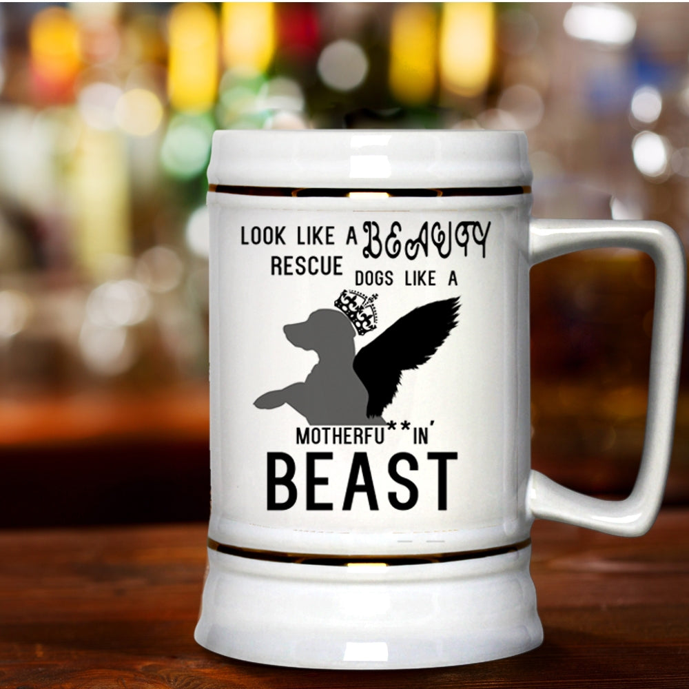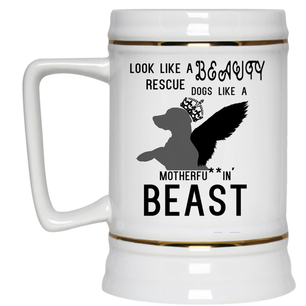 Cute Dogs Beer Stein 22oz, Look Like A Beauty Rescue Dogs Like A Beast Beer Mug