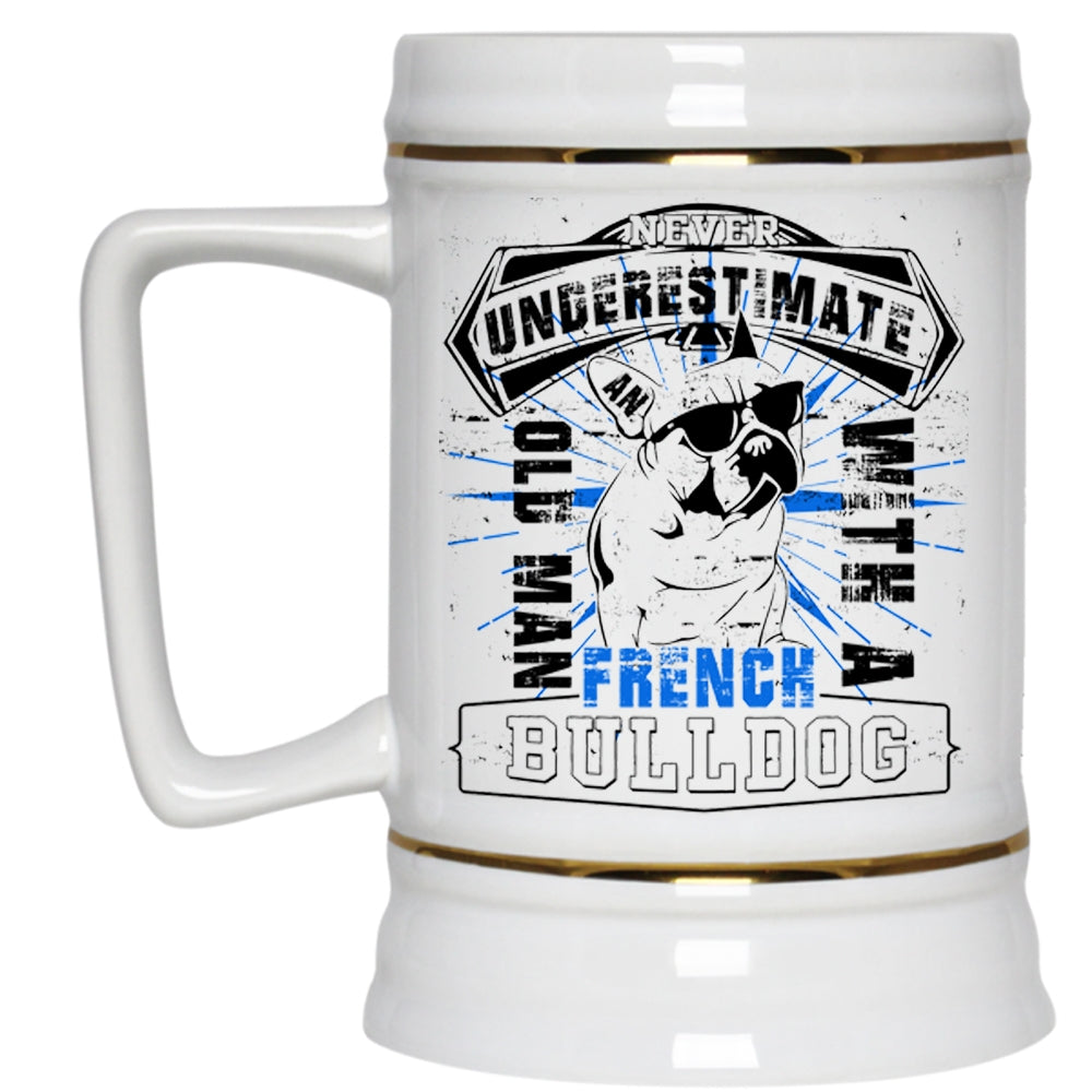 Cute Dogs Beer Stein 22oz, Old Man With A French Bull Dog Beer Mug