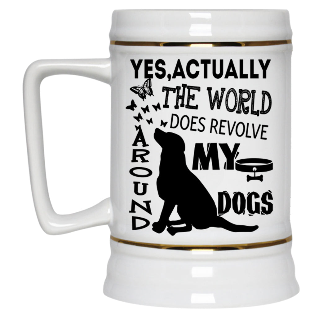 Cute Dogs Beer Stein 22oz, The World Does Revolve Around My Dogs Beer Mug