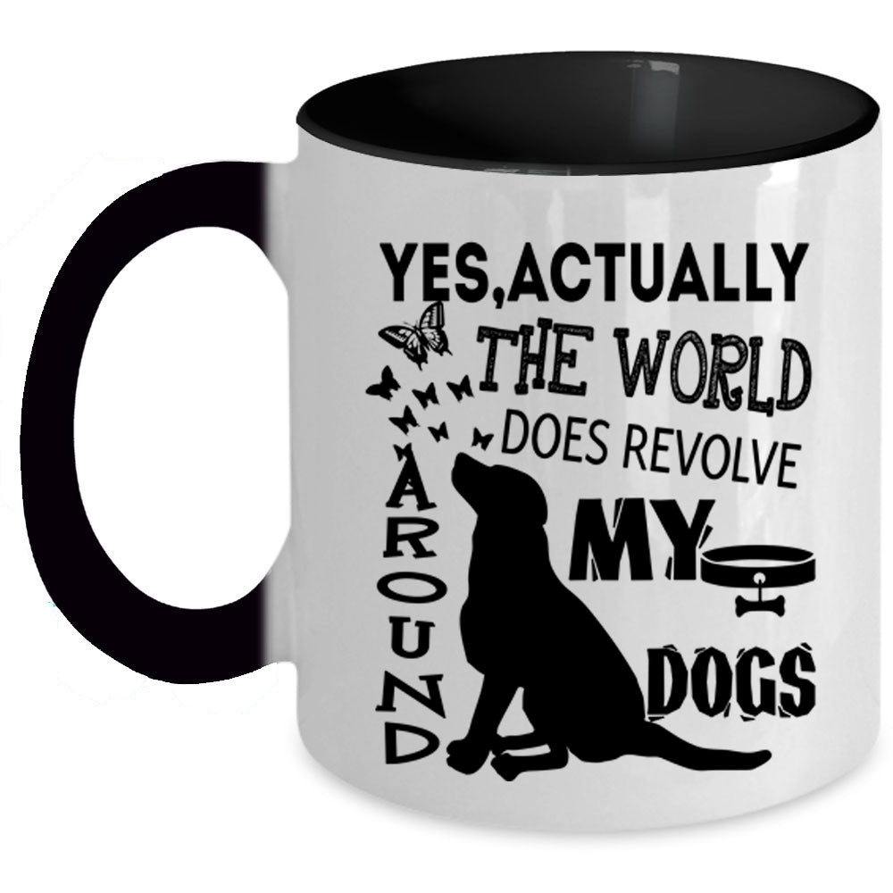 Cute Dogs Coffee Mug, The World Does Revolve Around My Dogs Accent Mug