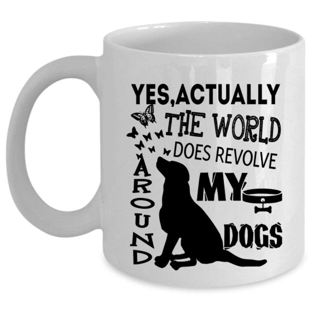 Cute Dogs Coffee Mug, The World Does Revolve Around My Dogs Cup