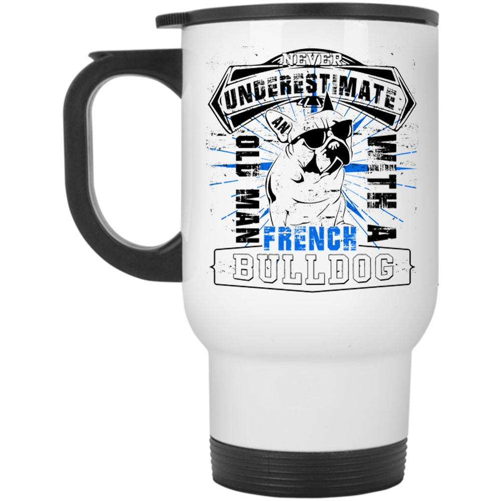 Cute Dogs Travel Mug, Old Man With A French Bull Dog Mug