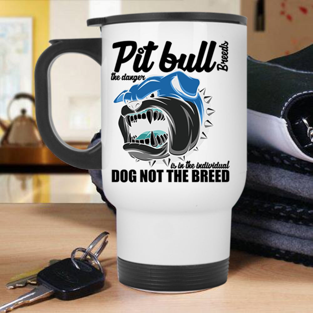Cute Dogs Travel Mug, Pit Bull Breeds The Danger Is In The Individual Mug