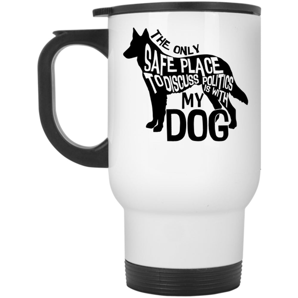 Cute Dogs Travel Mug, The Safe Place To Discuss Politics Is With My Dog Mug
