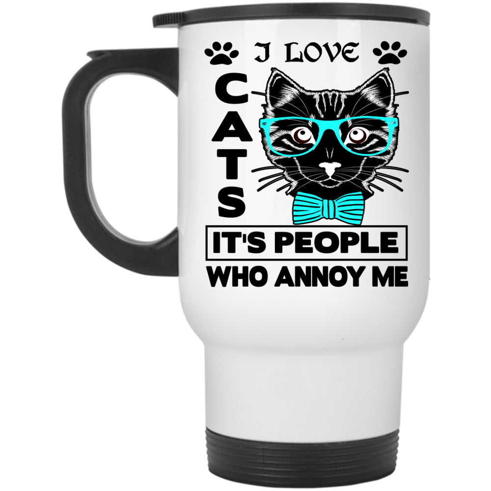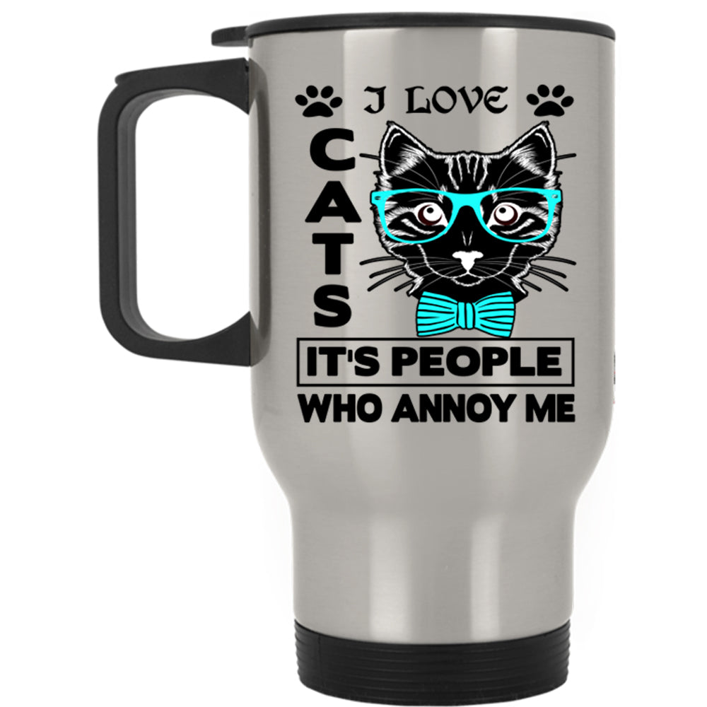Cute Gift For Cat Lovers Travel Mug, I Love Cats Mug