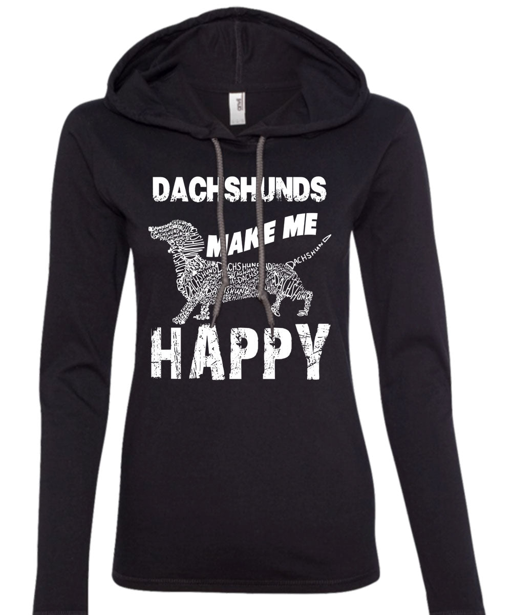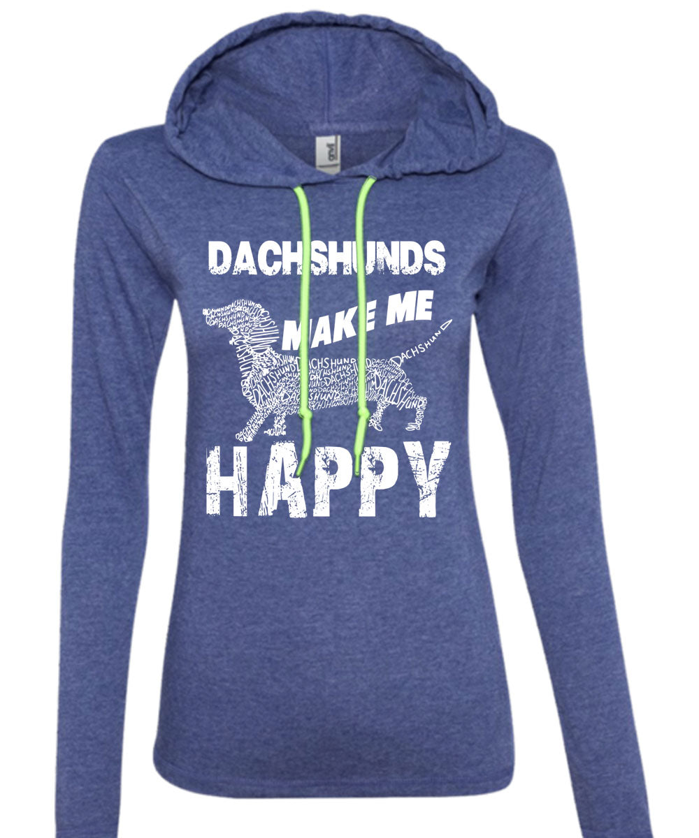 Dachshunds Make Me Happy T Shirt, I Love My Dog T Shirt (Anvil Ladies Ringspun Hooded)