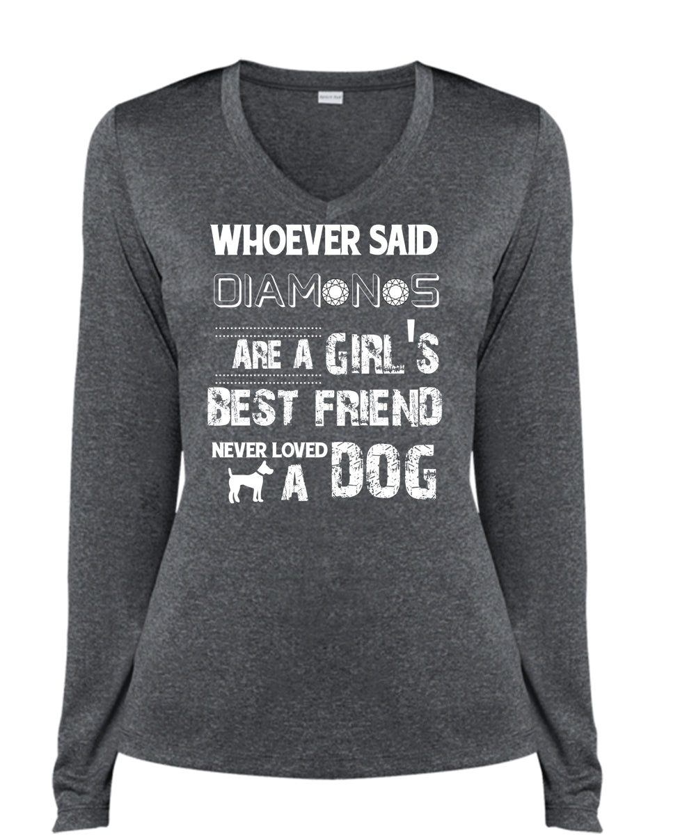 Diamonds Are A Girl's Best Friend Never Loved A Dog T Shirt, My Pets T Shirt (Ladies LS Heather V-Neck)