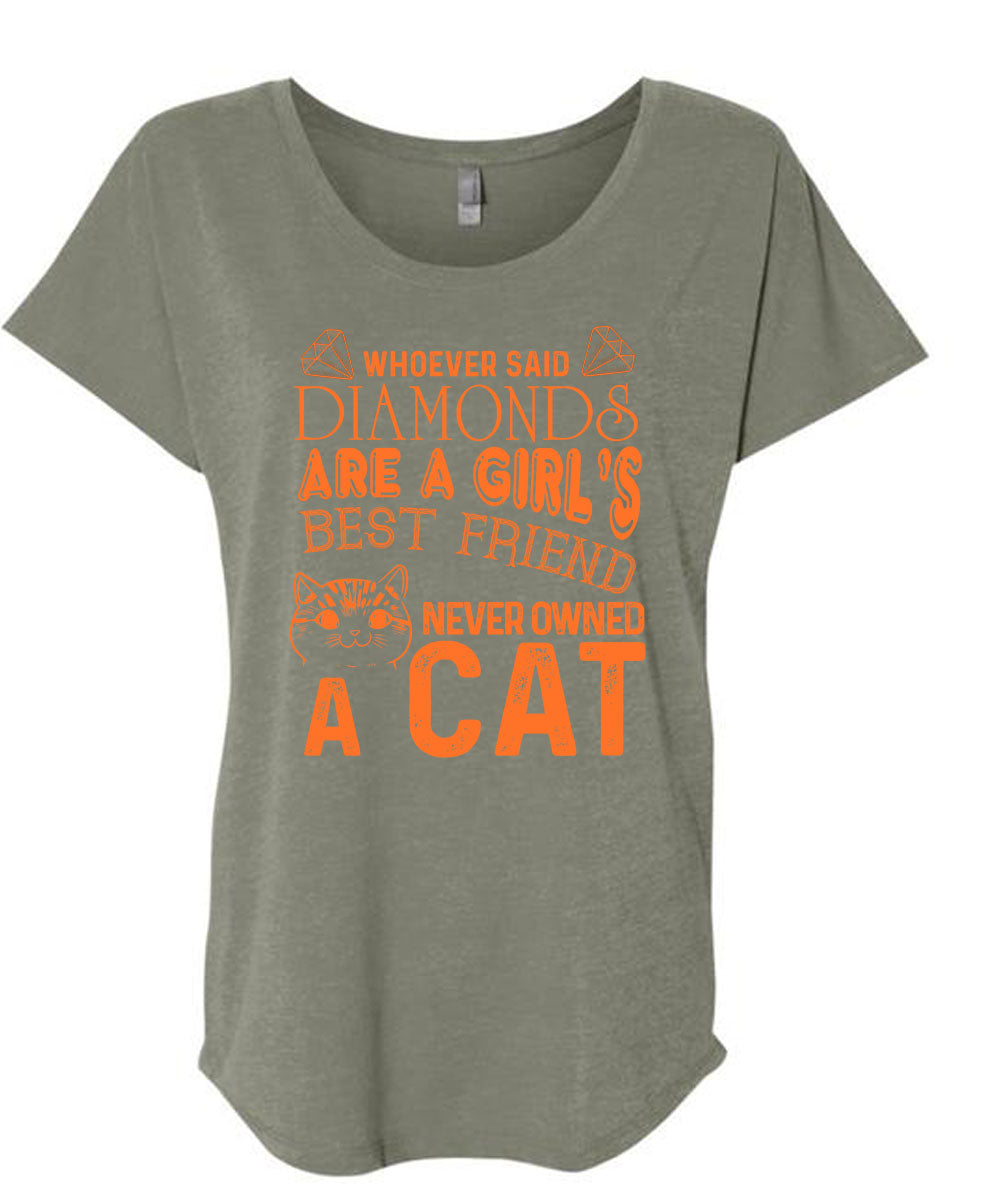 Diamonds Are A Girl's Best Friend Never Owned A Cat T Shirt, I Love Cat T Shirt, Cool Shirt (Ladies' Triblend Dolman Sleeve)