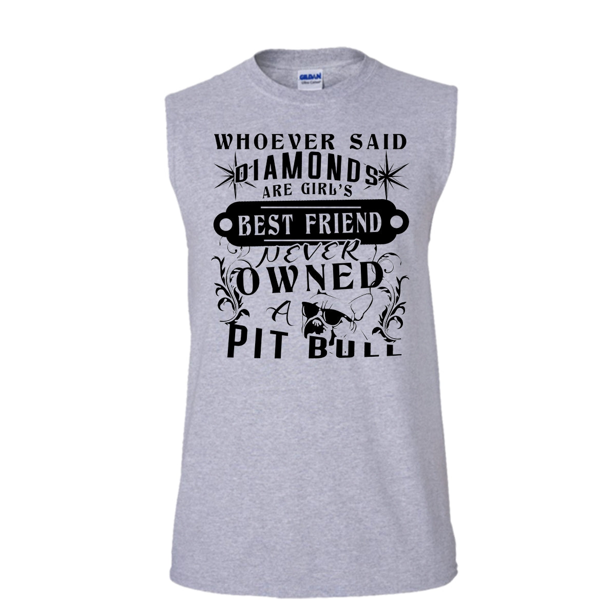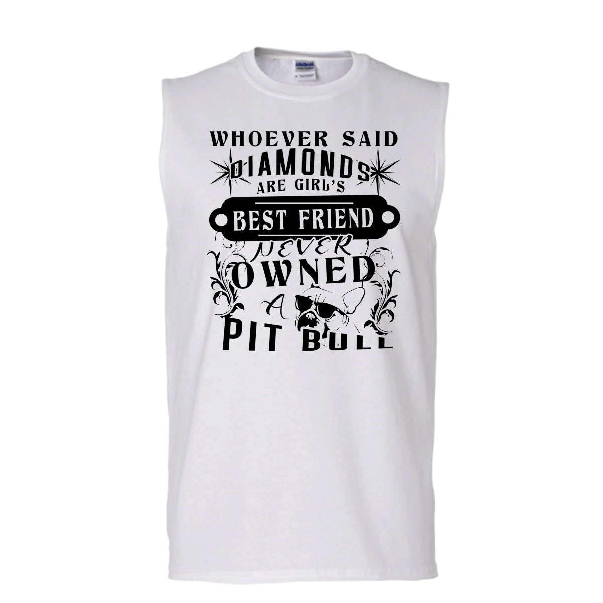 Diamonds Are Girl's Best Friend Never Owed Pit Bull Shirt, Cute Dog Shirt (Men's Cotton Sleeveless)