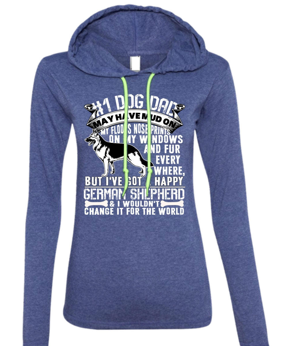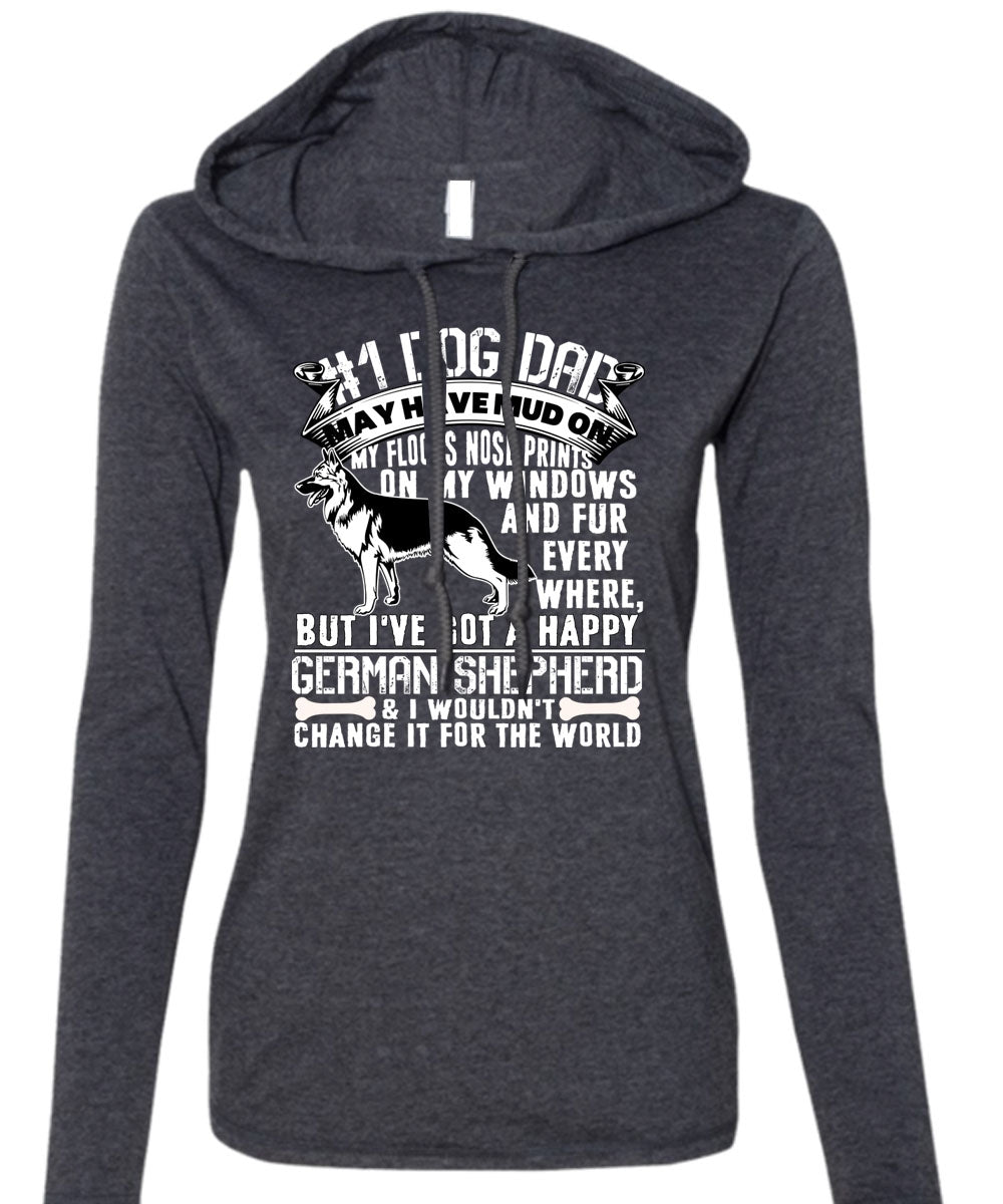 Dog Dad May Have Mud T Shirt, I've Got A Happy German Shepherd T Shirt (Anvil Ladies Ringspun Hooded)