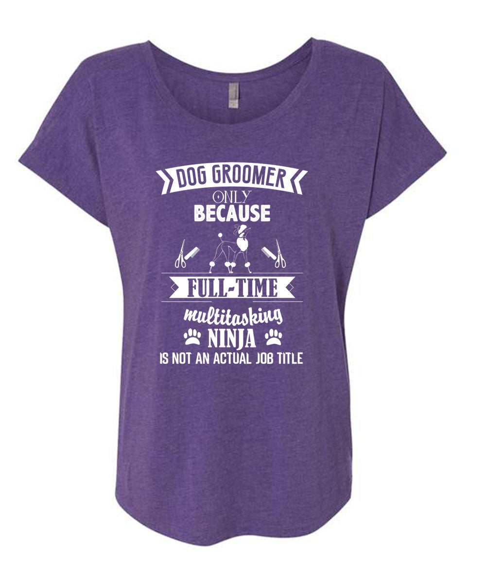 Dog Groomer Only Because Full-Time Multitasking T Shirt, I Love Dog Groomer T Shirt, Cool Shirt (Ladies' Triblend Dolman Sleeve)