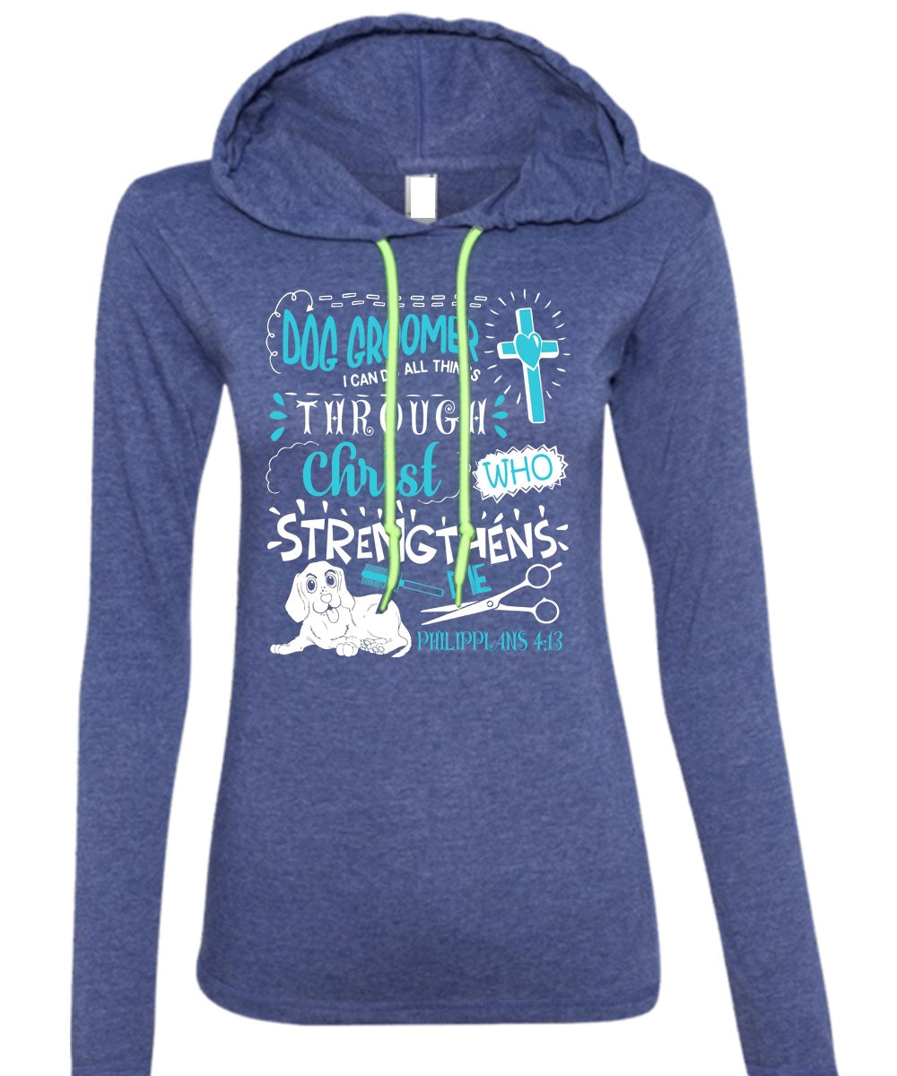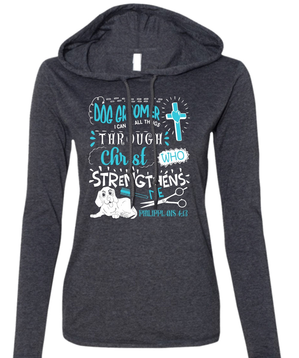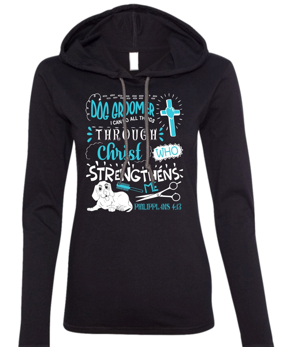Dog Groomer T Shirt, Christ Strengthens Me T Shirt (Anvil Ladies Ringspun Hooded)