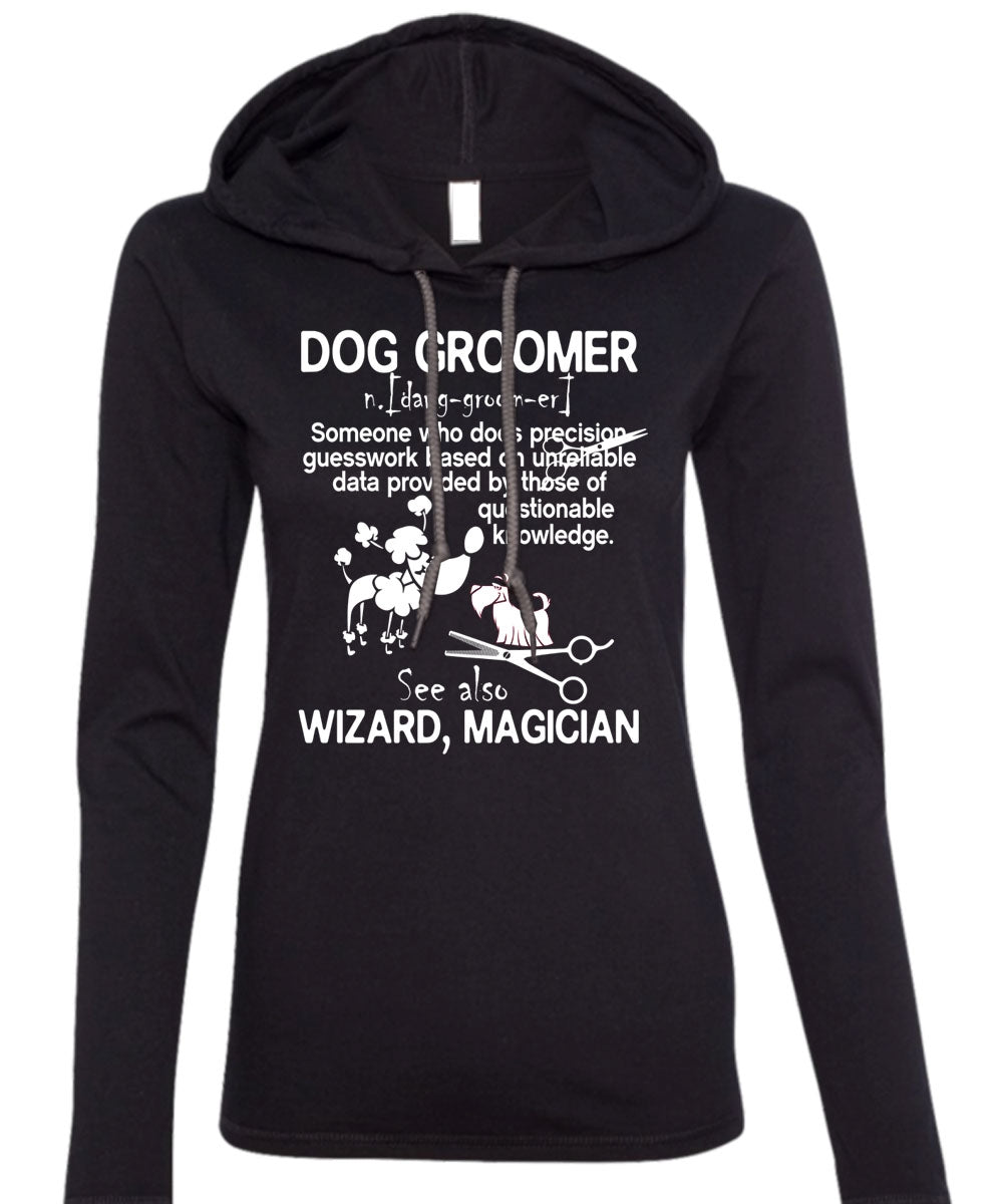 Dog Groomer T Shirt, See Also Wizard Magician T Shirt (Anvil Ladies Ringspun Hooded)