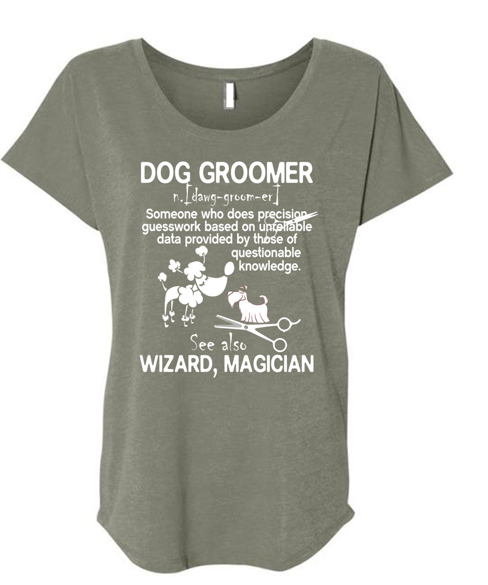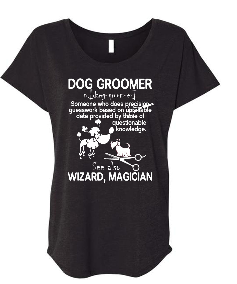Dog Groomer T Shirt, See Also Wizard Magician T Shirt, Cool Shirt (Ladies' Triblend Dolman Sleeve)