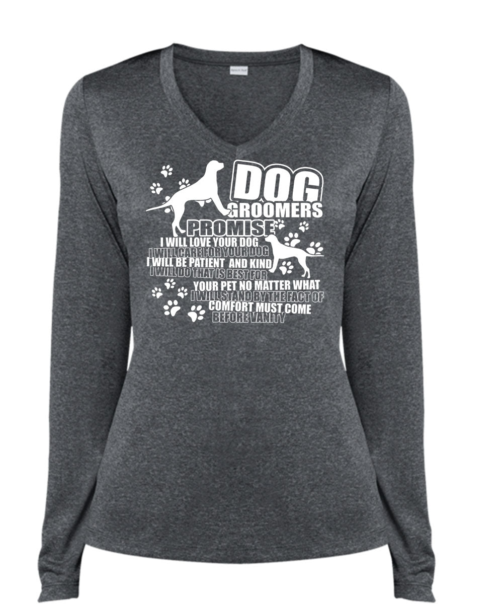 Dog Groomers Promise T Shirt, Being A Groomer T Shirt, Cool Shirt (Ladies LS Heather V-Neck)
