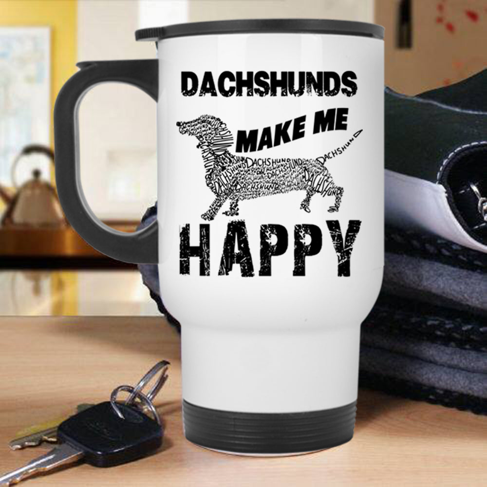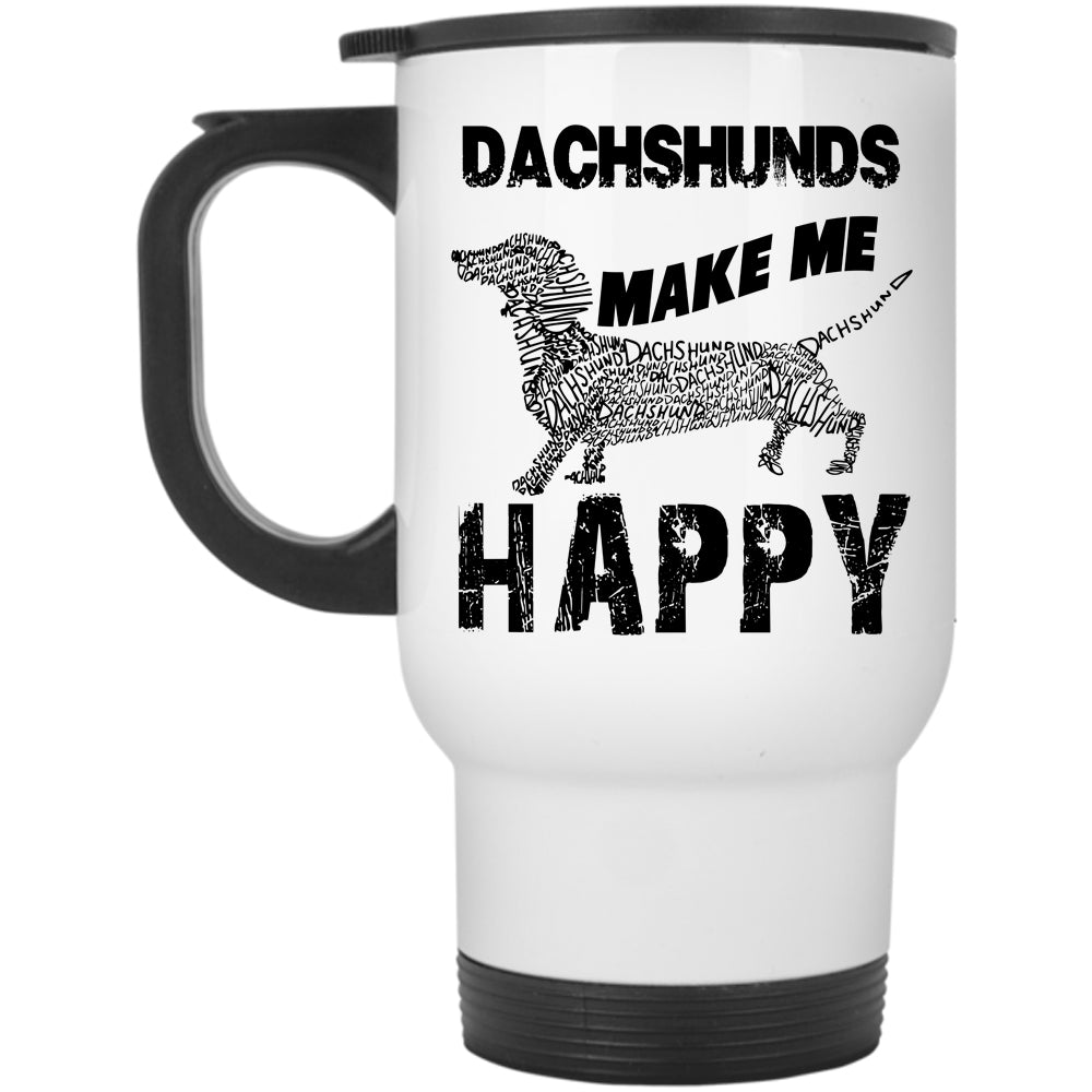 Dog Lovers Travel Mug, Dachshunds Make Me Happy Mug