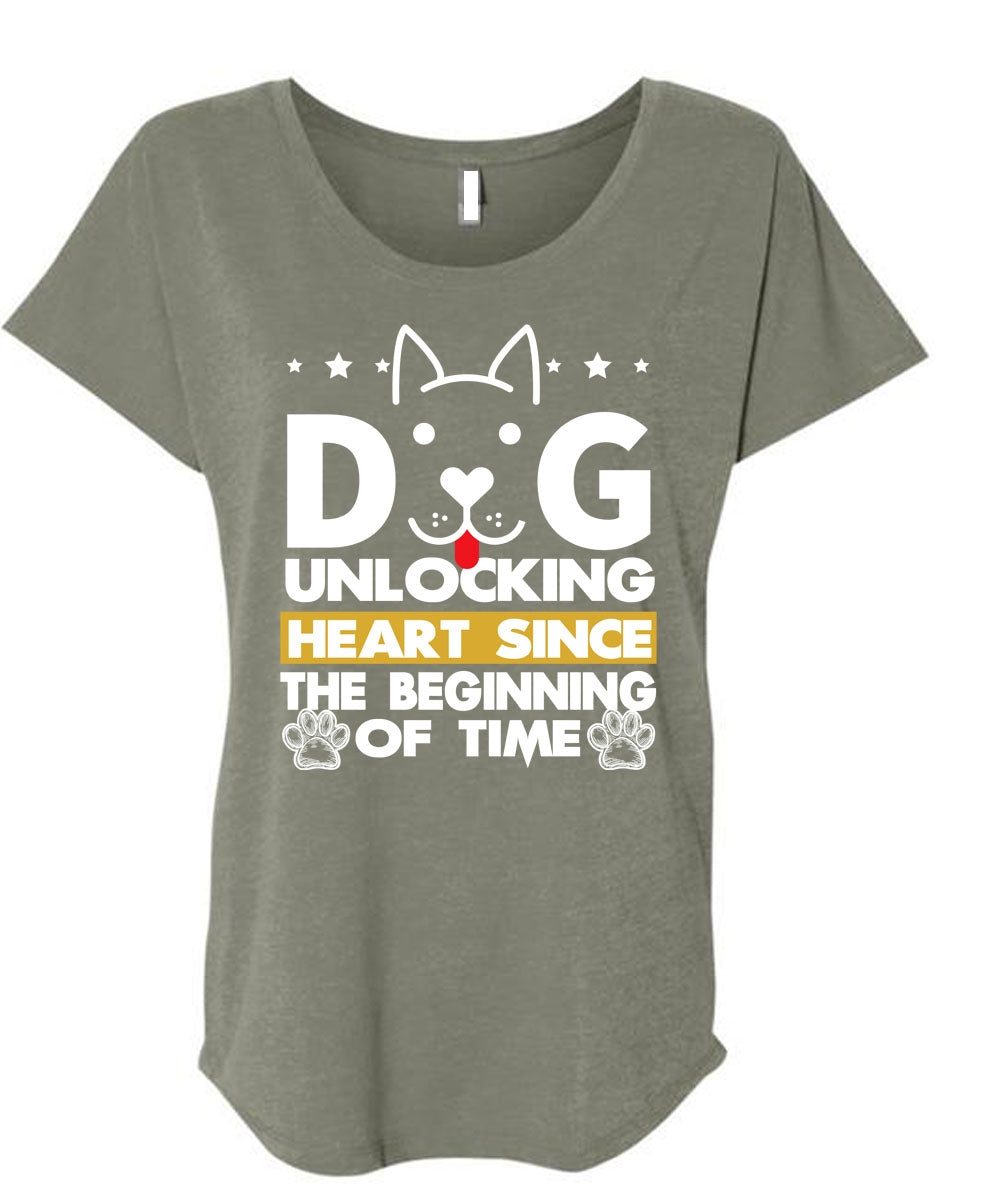 Dog Unlocking Heart T Shirt, My Favorite T Shirt, Cool Shirt (Ladies' Triblend Dolman Sleeve)