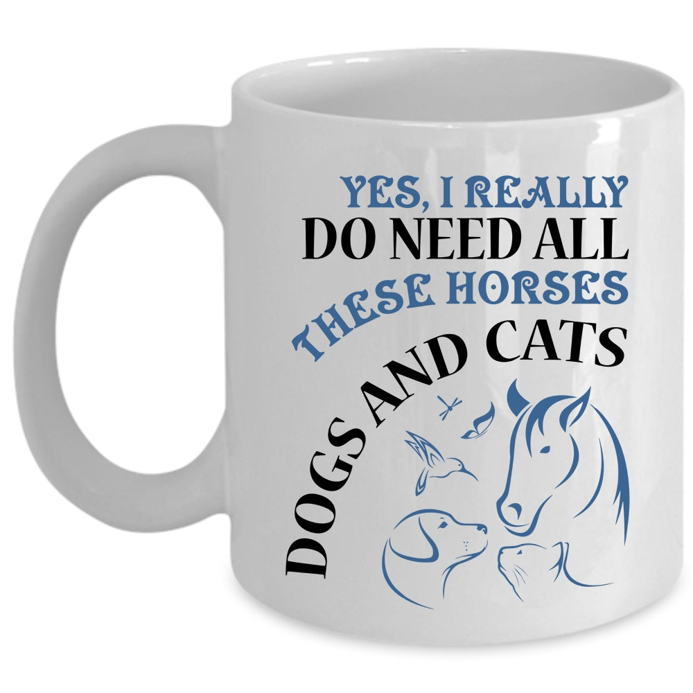 Dogs And Cats Coffee Mug, I Really Do Need All These Horses Cup
