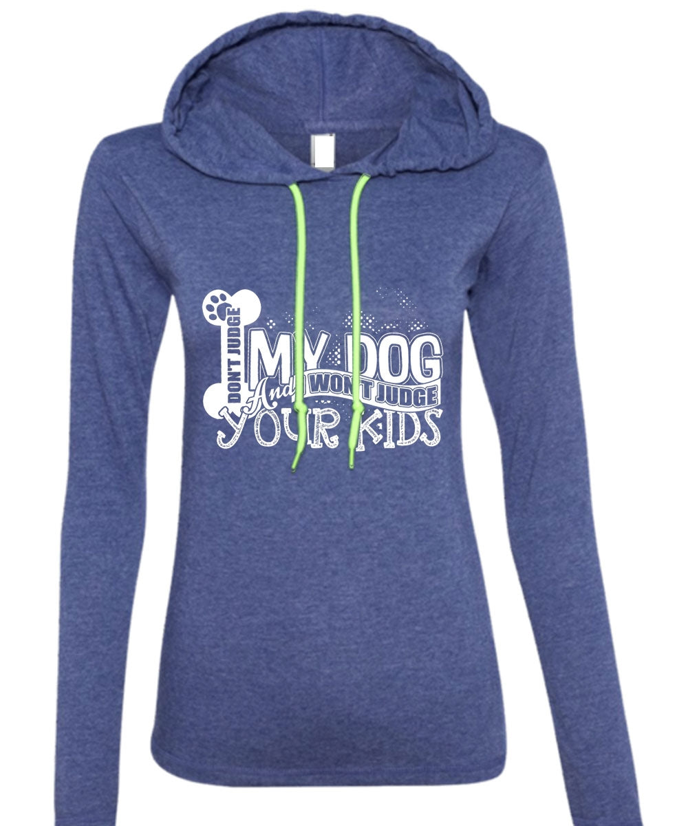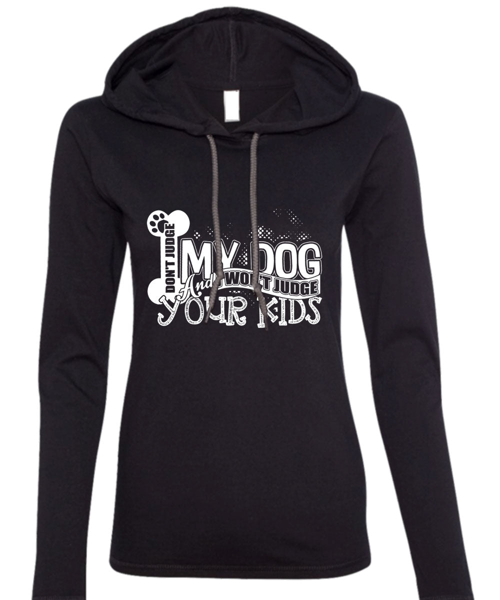 Don't Judge My Dog T Shirt, I Won't Judge Your Kids T Shirt (Anvil Ladies Ringspun Hooded)