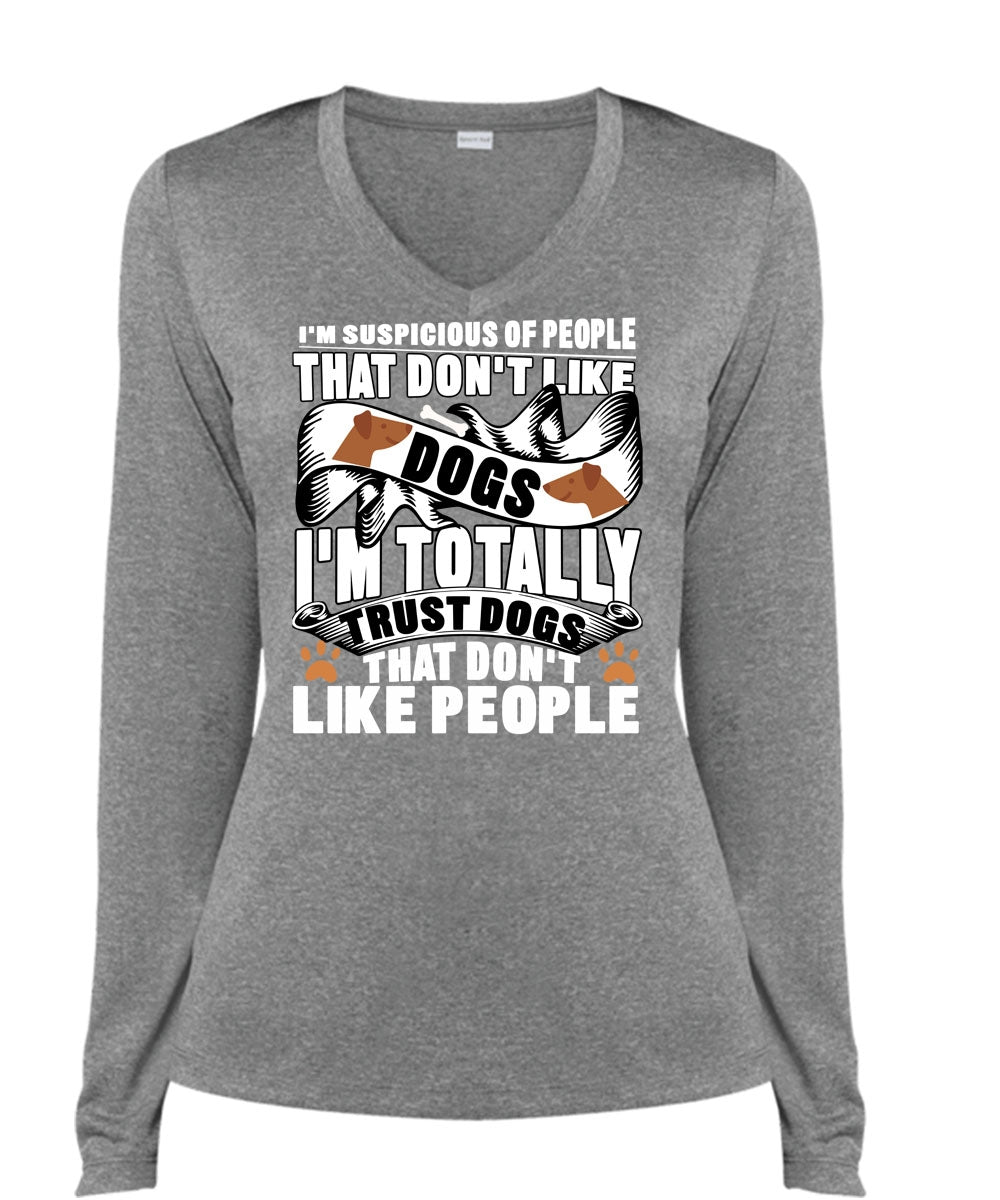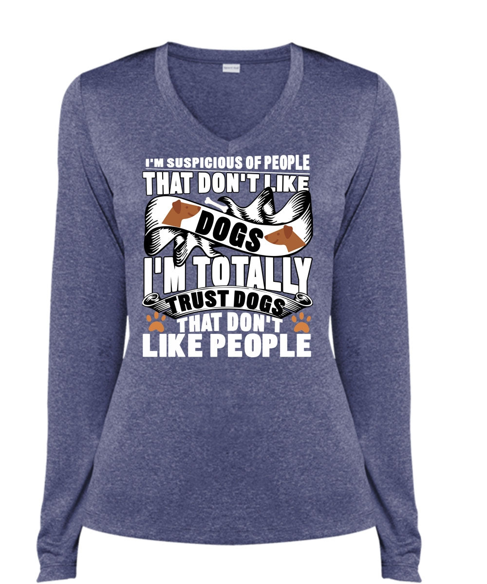 Don't Like Dogs T Shirt, I Love My Dog T Shirt, Cool Shirt (Ladies LS Heather V-Neck)
