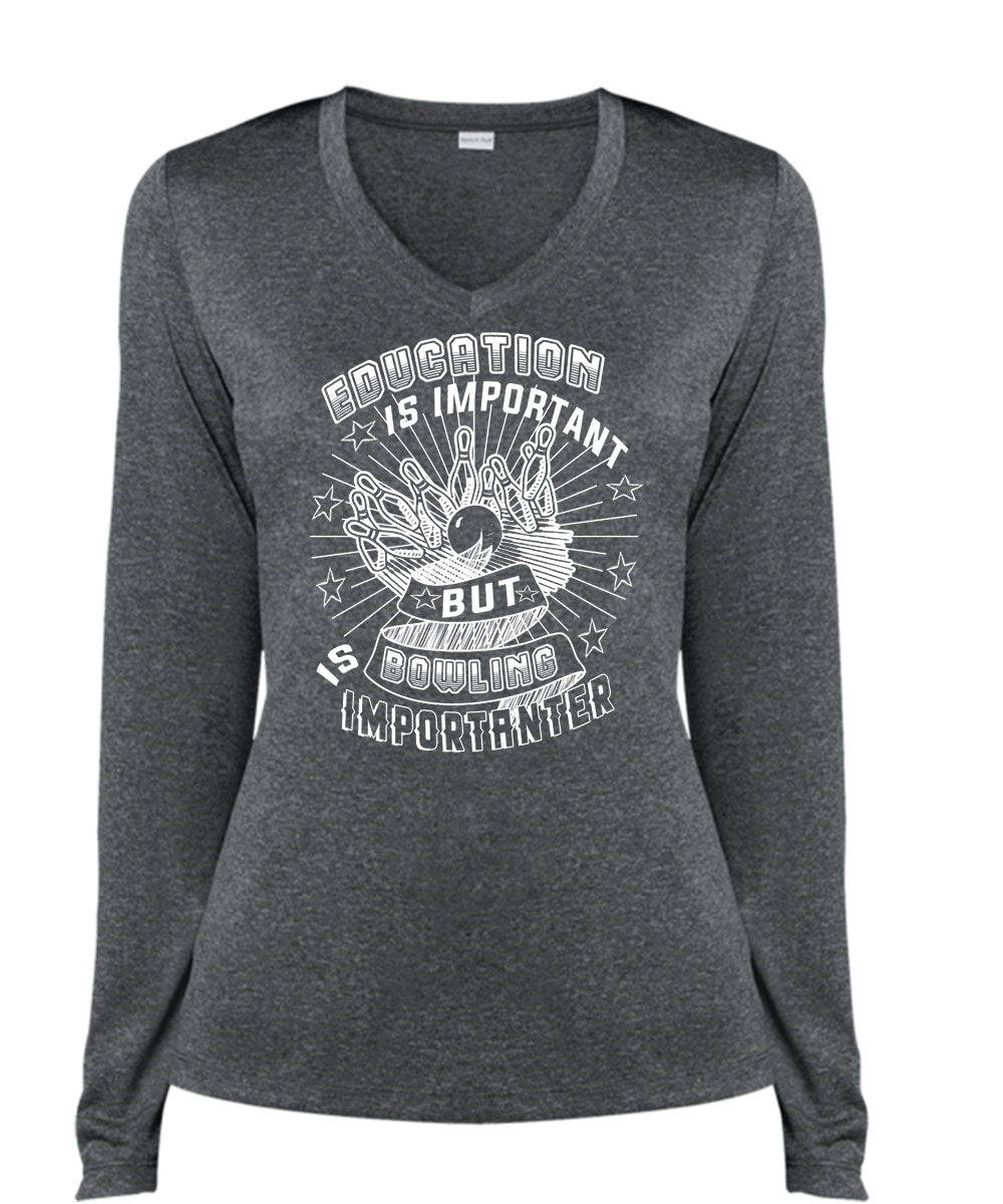 Education Is Important But Bowling Is Importanter T Shirt, Favorite T Shirt (Ladies LS Heather V-Neck)