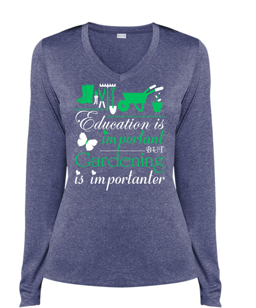 Education Is Important But Gardening Is Importanter T Shirt, I Love Gardening T Shirt, Cool Shirt (Ladies LS Heather V-Neck)